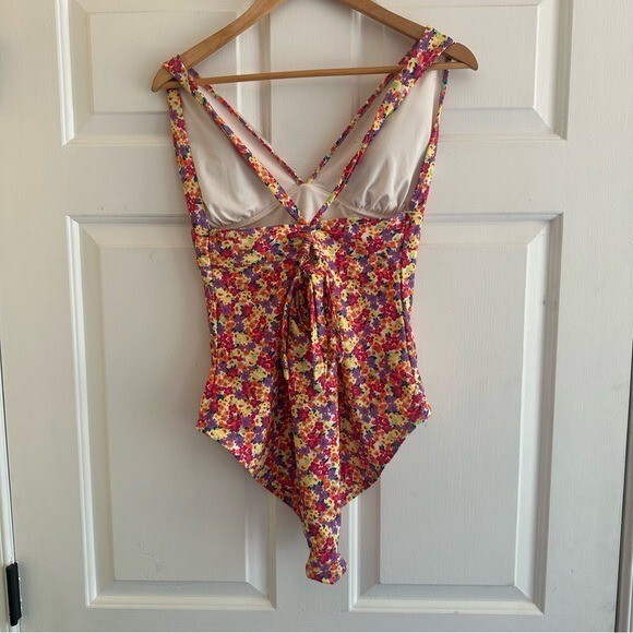 как выглядит Old Navy Womens One Piece Swimsuit V-Neck Tie Back Ditsy Floral Size XL Summer фото