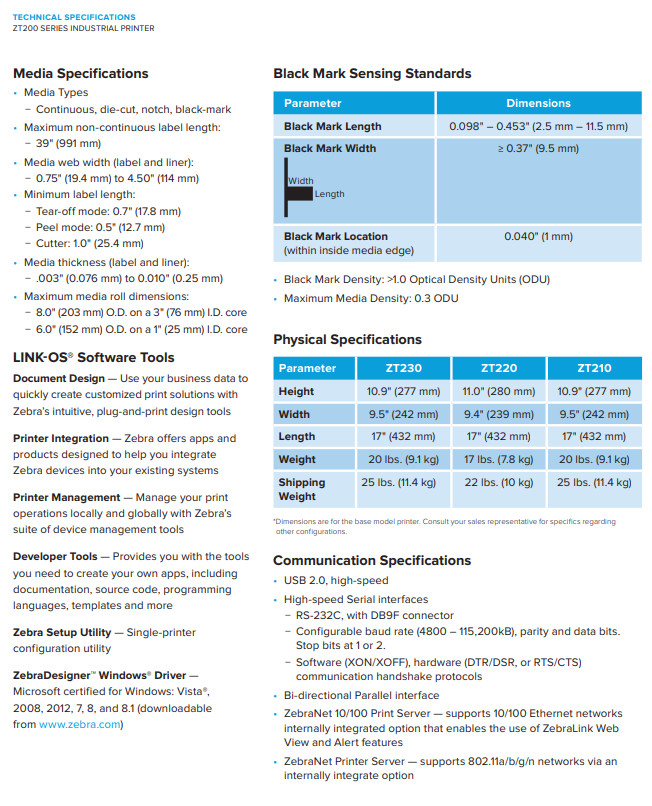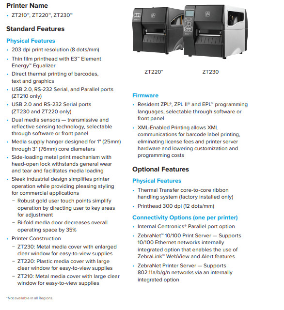 Zebra ZT220 Industrial Thermal Label Printer 203 DPI