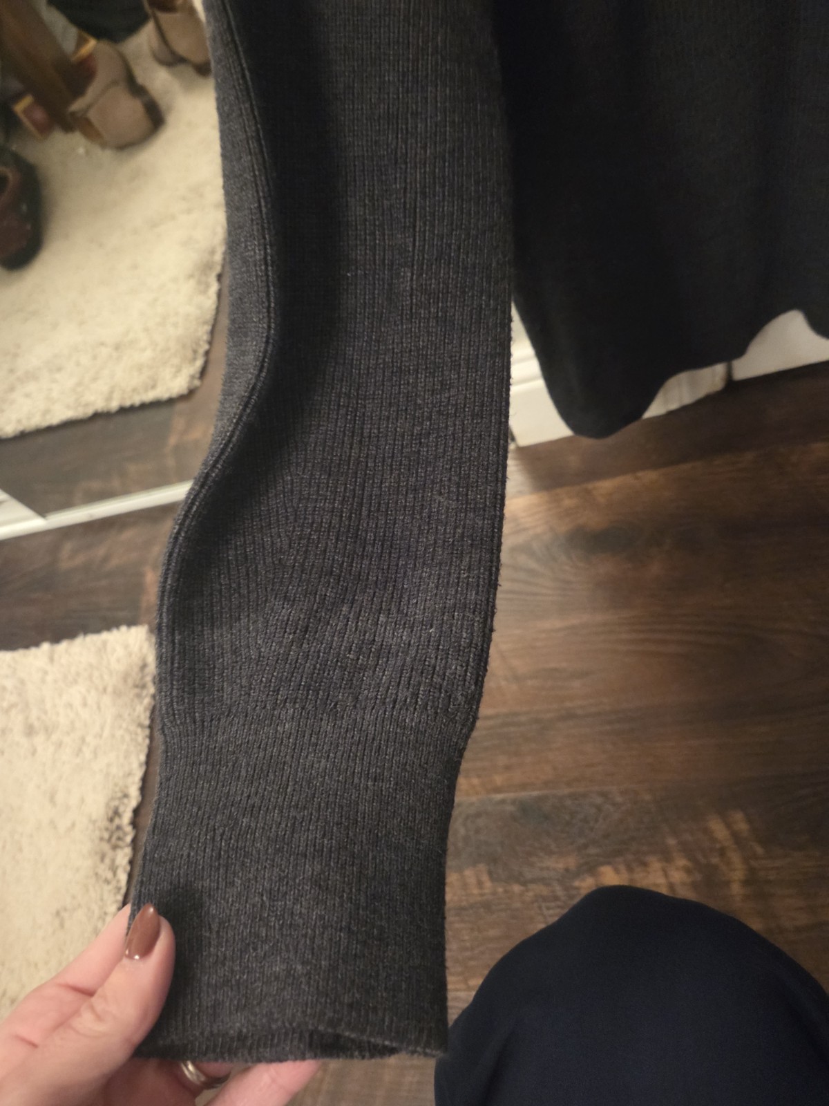 как выглядит Lululemon Merino Wool-Blend Ribbed Crewneck Sweater Heathered Black Size 4 фото