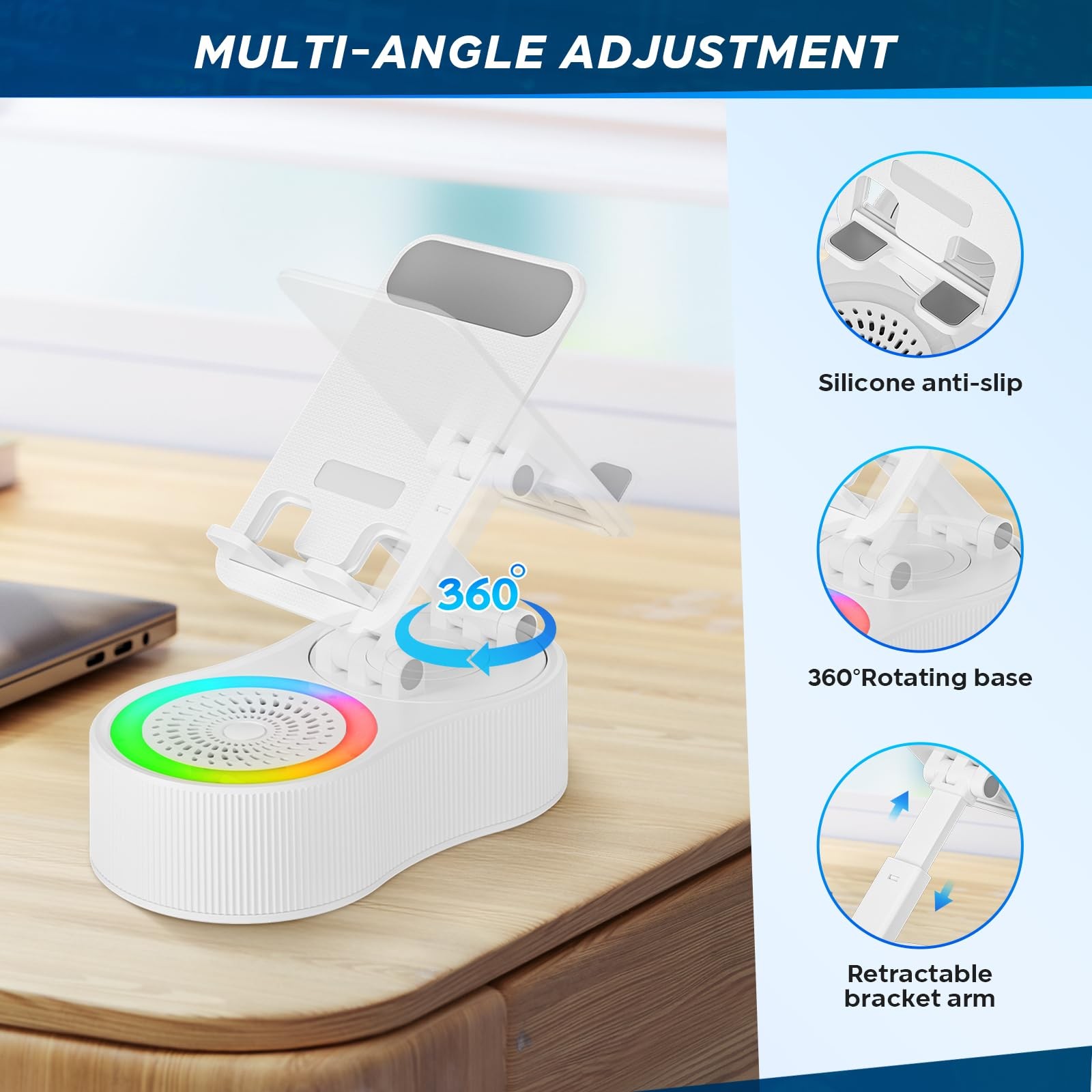 как выглядит Black Cell Phone Stand Holder with Wireless Bluetooth Speaker Induction Audio фото