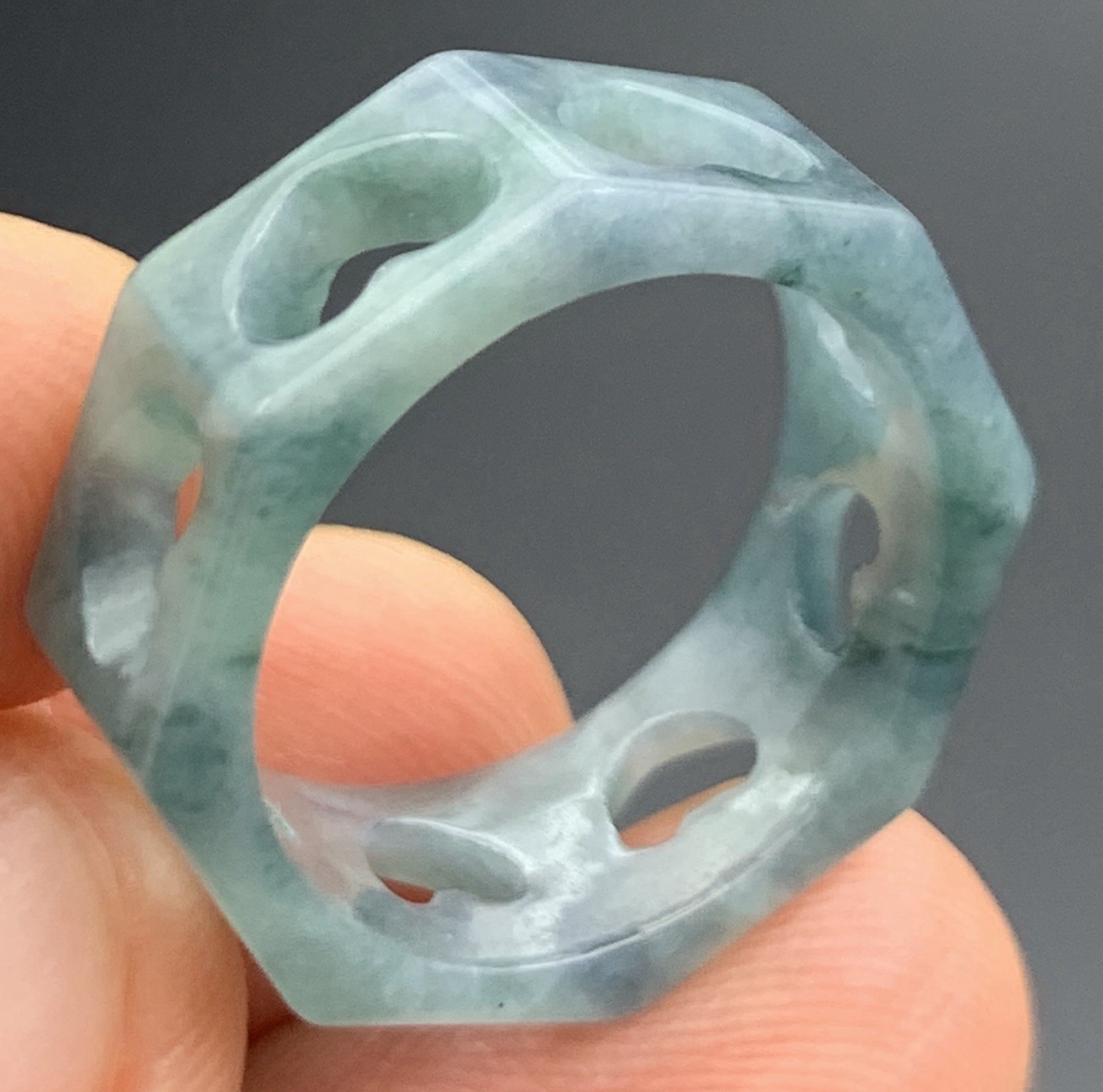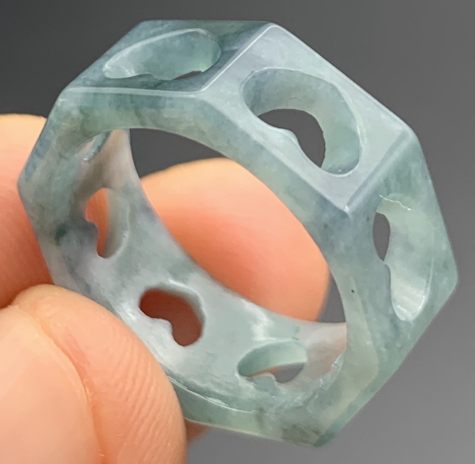 как выглядит Video Certified Natural A Jadeite Jade Heart Round Circle Ring NO. 6.5 420034 фото