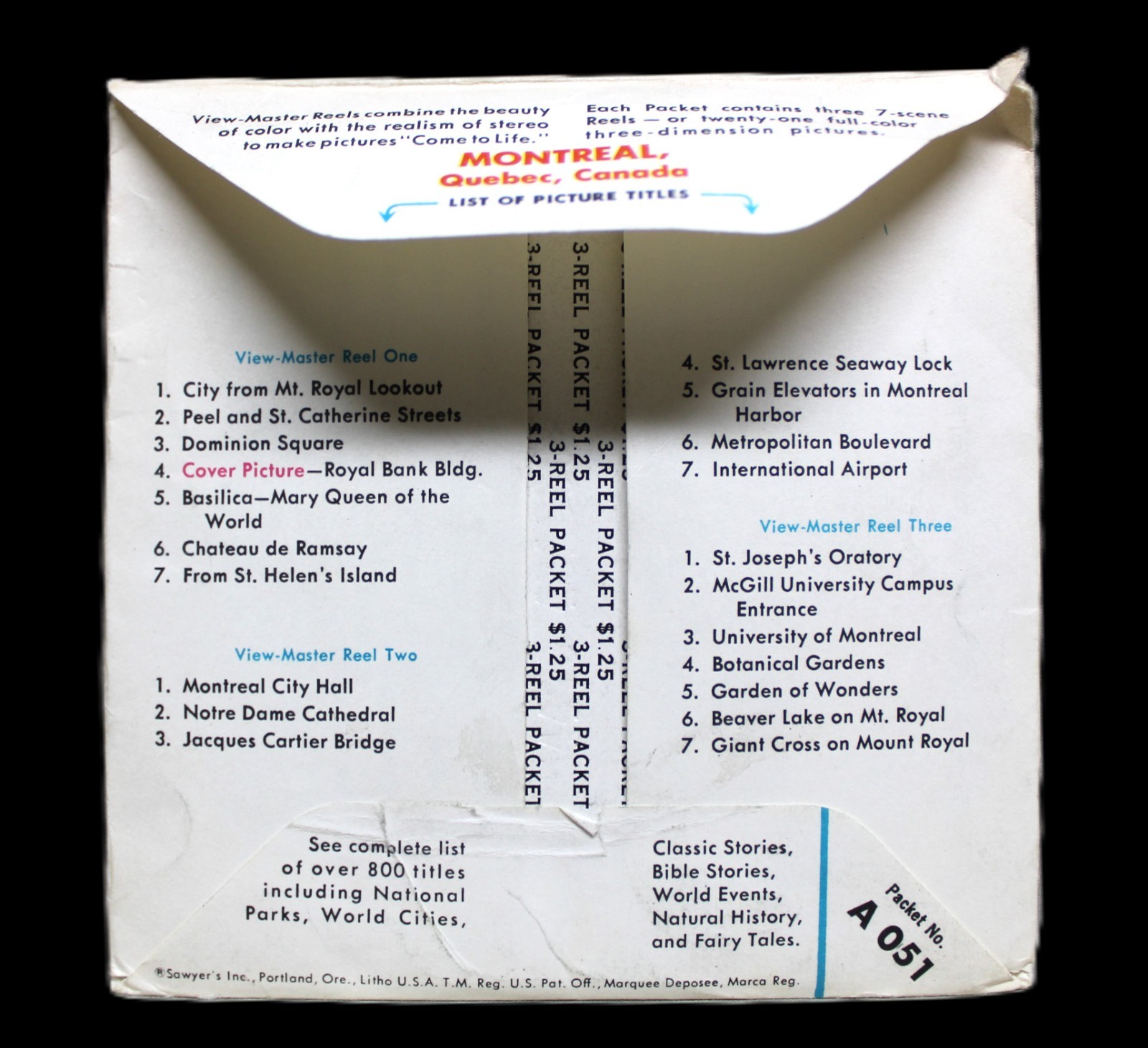 • SAWYERS VIEW MASTER REELS A-051 MONTREAL QUEBEC CANADA 1960s VINTAGE