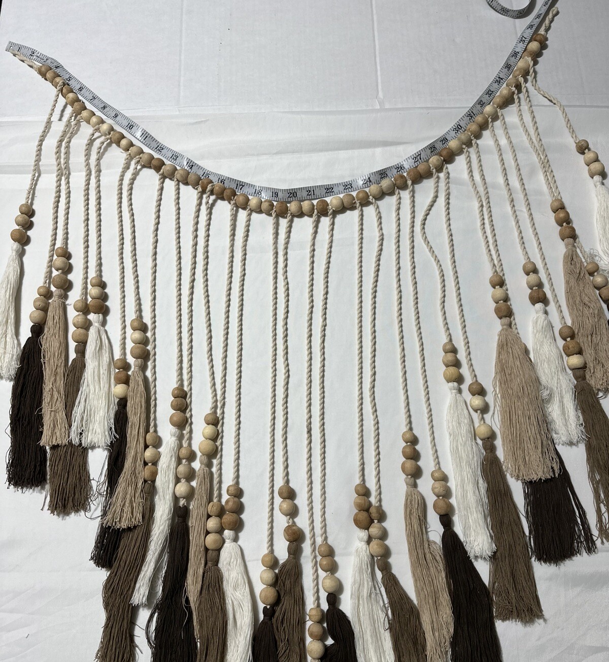 Boho Macram Wood Beads Tasseled Wall Hanging Woven Tapestry Decor Brown Tan