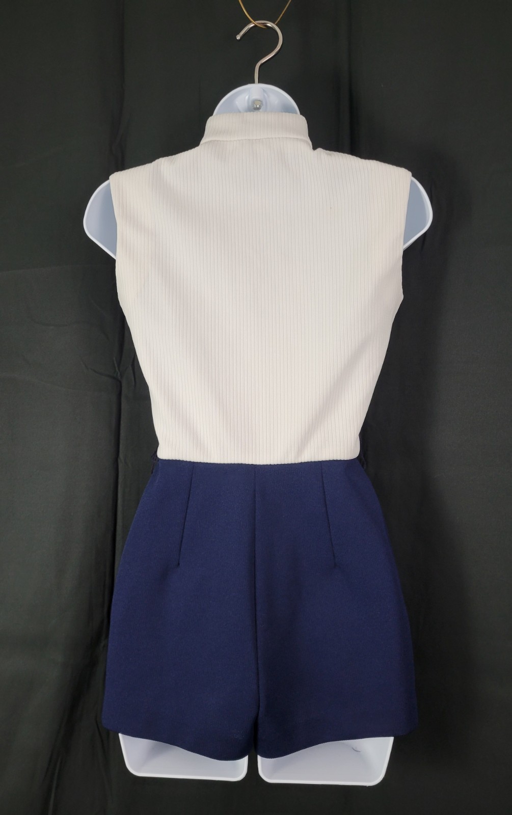 Vintage White Navy Blue Sleeveless Shorts Romper w Mock Turtleneck Size XS