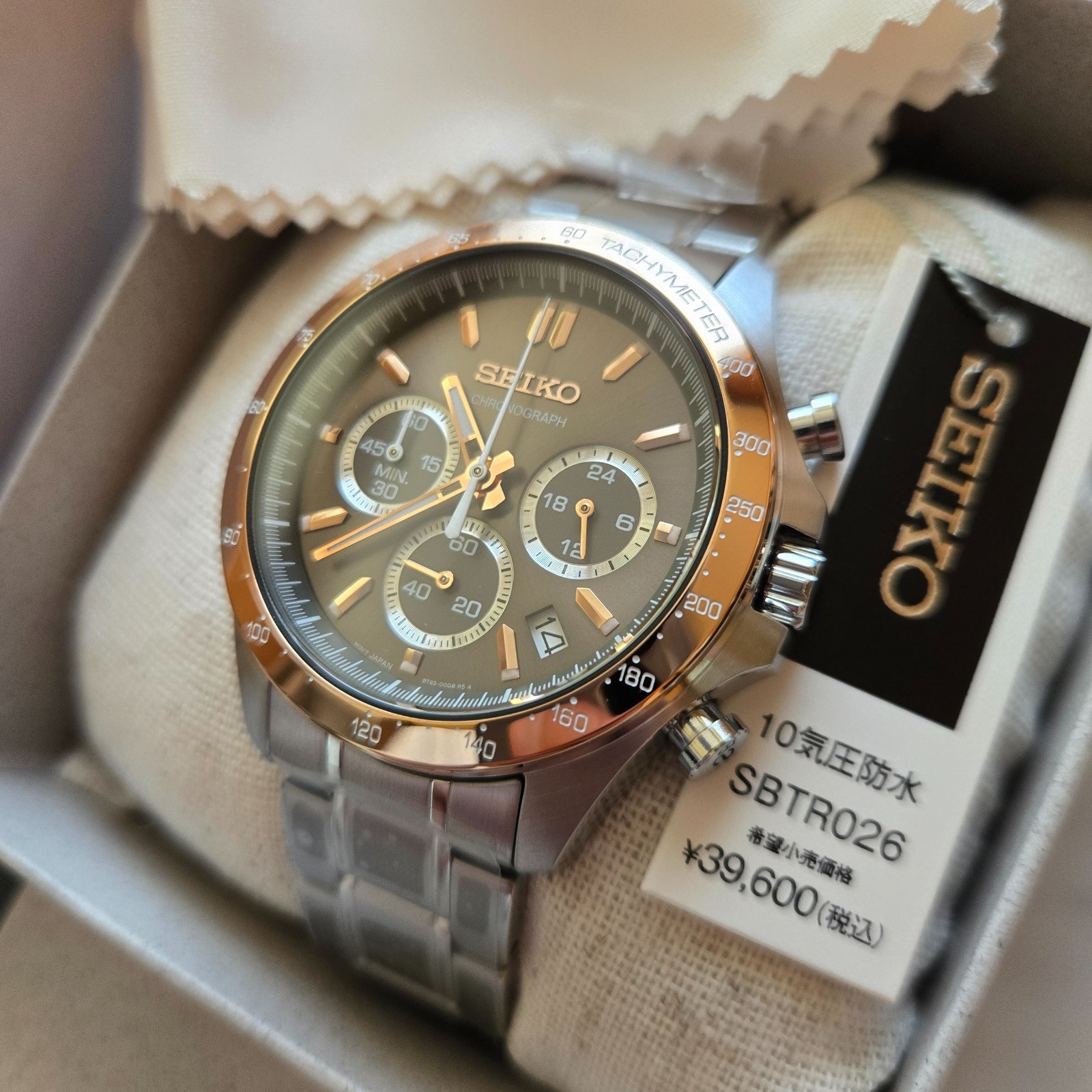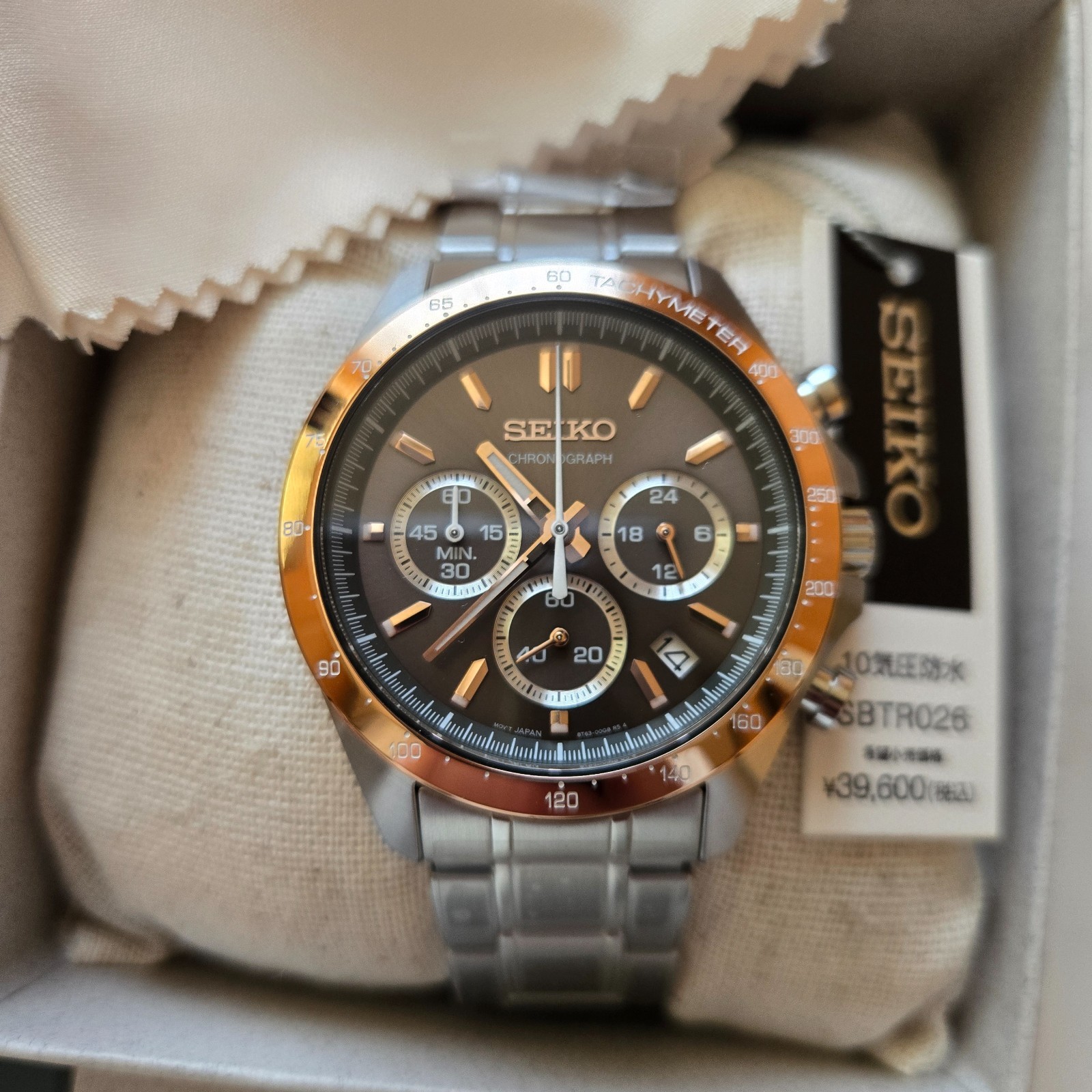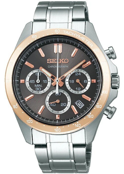 Brand New SEIKO SBTR026 Chronograph Black Gold Dial Stainless Steel Watch Japan