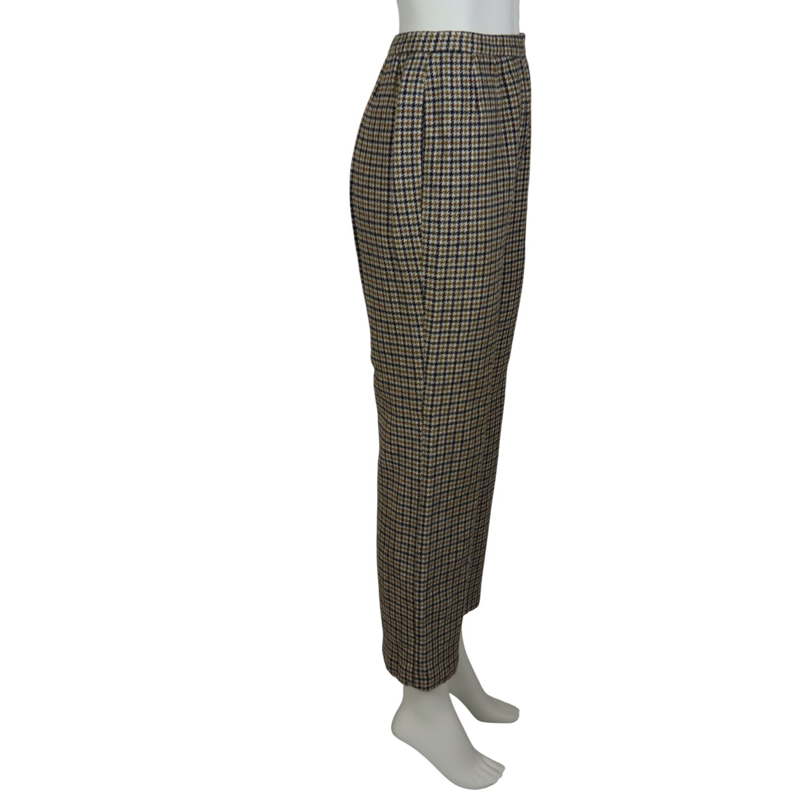 Vintage Ankle Wool Pants Houndstooth Check Pleated Lined Side Zip 70s Women's 24