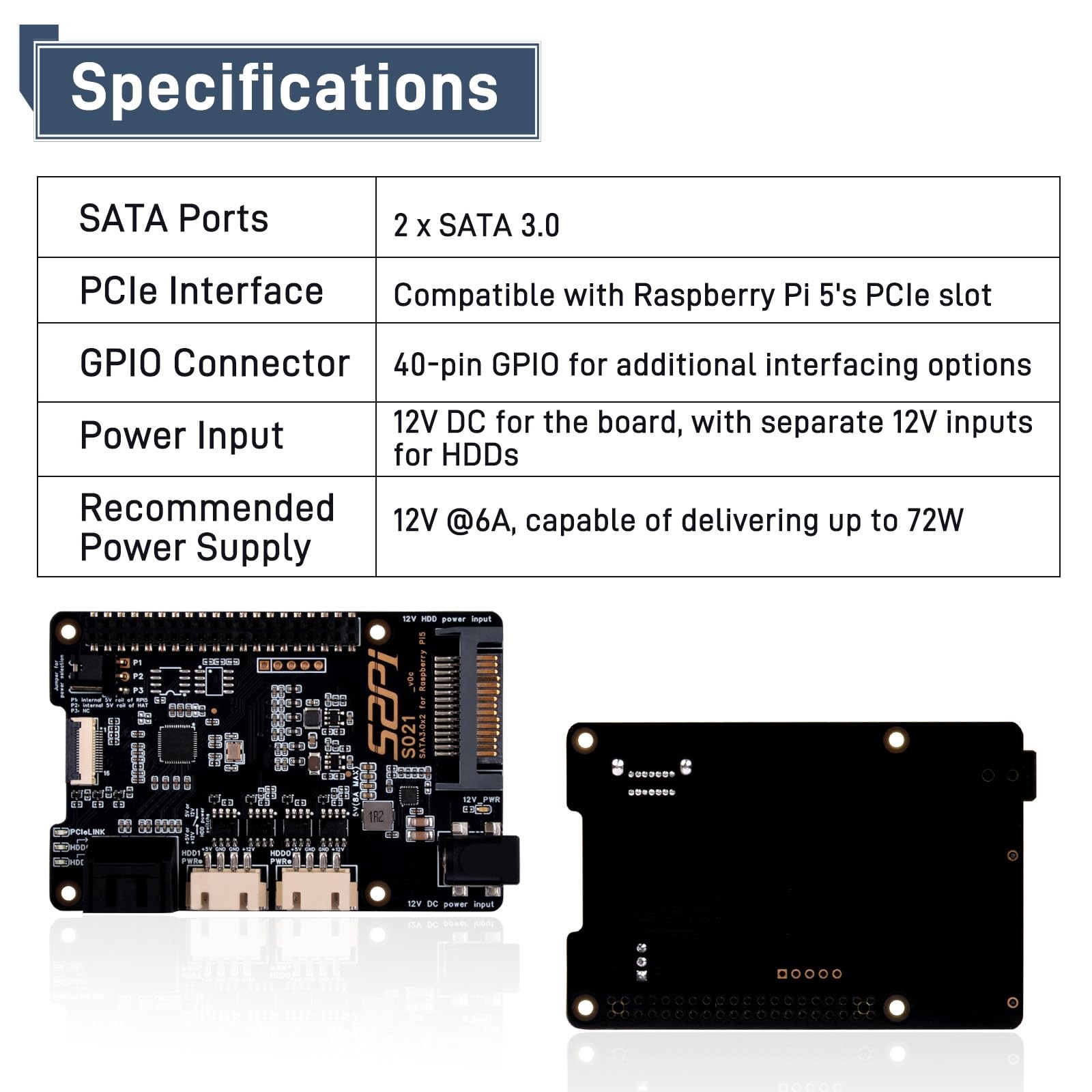 GeeekPi S021 SATA 3.0x2 for Raspberry Pi 5 with Active Cooler 12V Power Supply