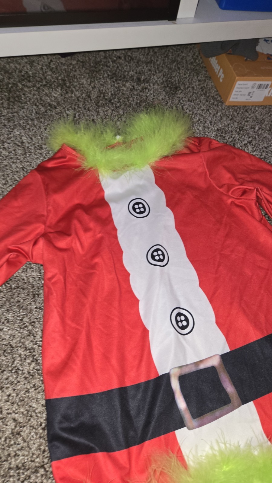 как выглядит Grinch Santa Kids Costume Size 110 5/6 Red Green Faux Fur Christmas Outfit фото