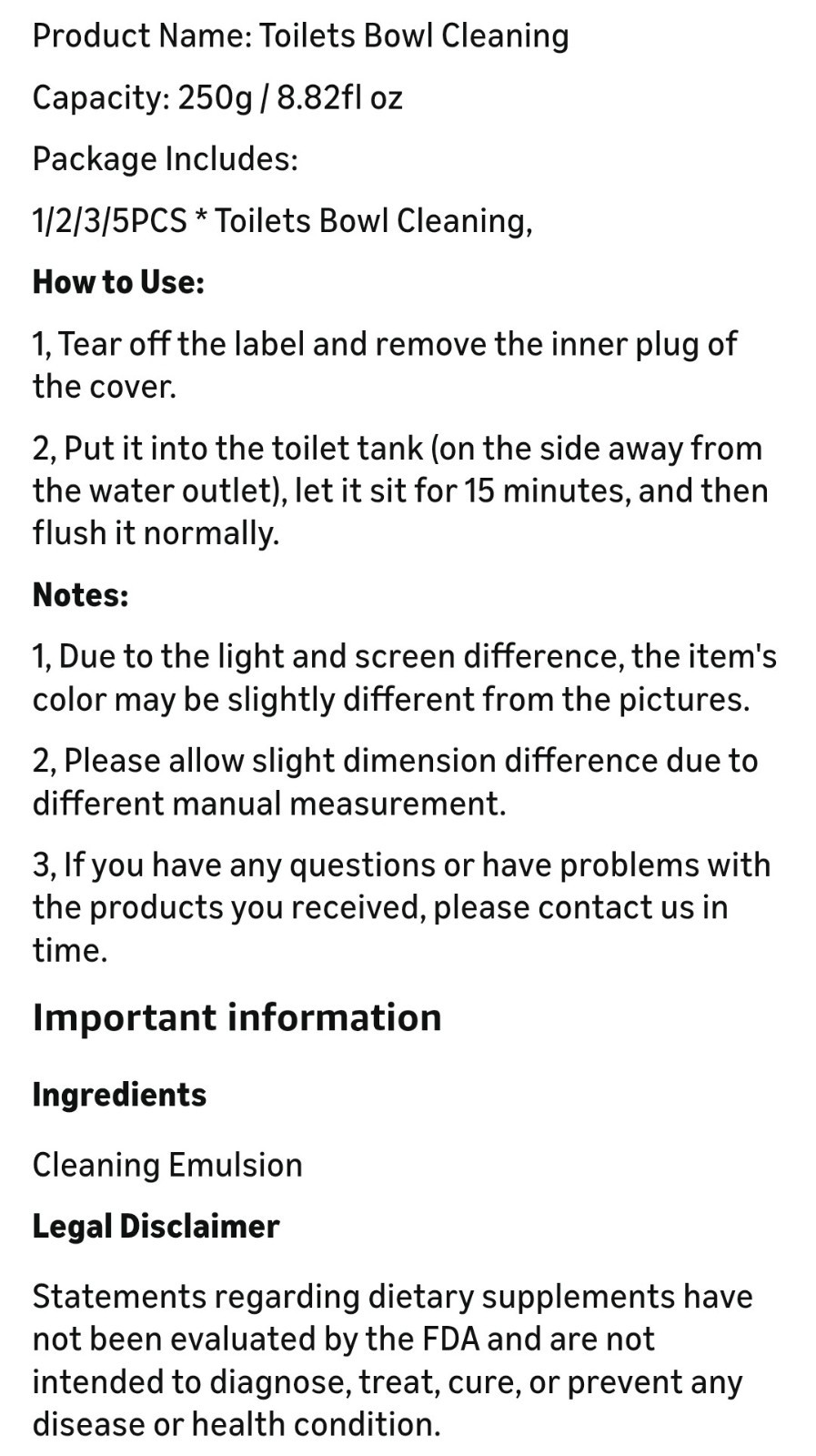 Тип: Toilet Bowl Cleaner