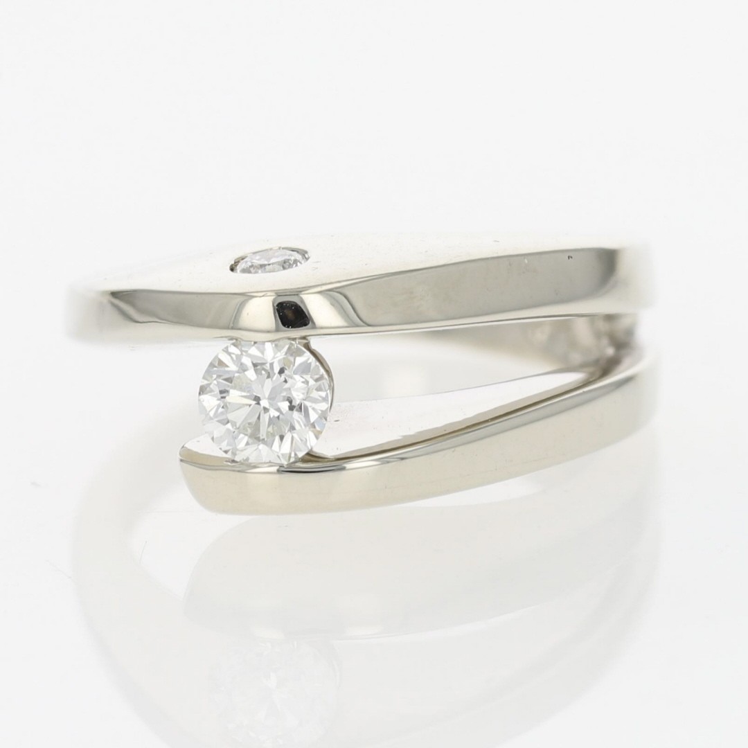 как выглядит .42ctw Round Diamond Solitaire with Accent Engagement Ring 14k White Gold Size 7 фото