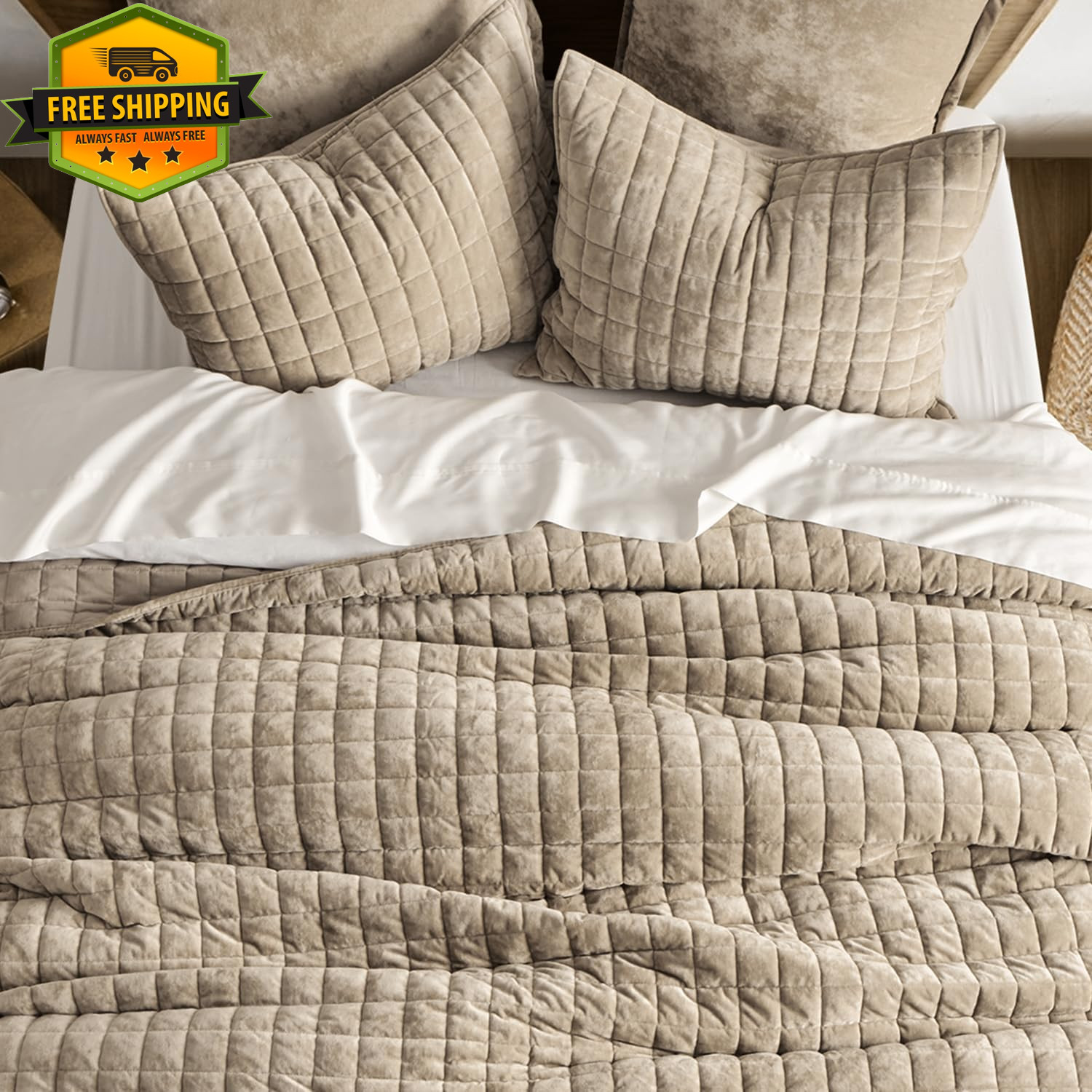 RECYCO Luxury Velvet Quilt Set Full Queen Size Bedding Sets, Ultra Soft Velve...