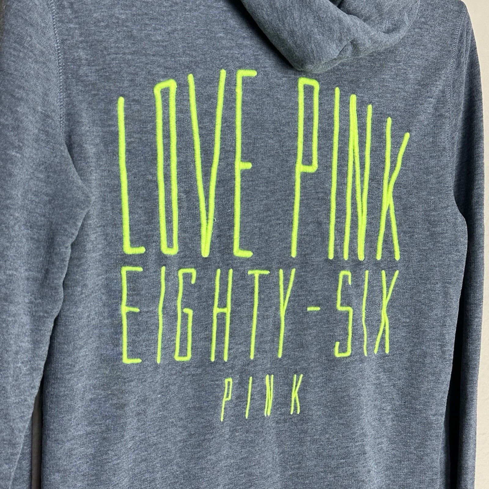 как выглядит PINK Victorias Secret Zip Up Jacket Women Size XS Gray Neon Green Love Pink 86 фото