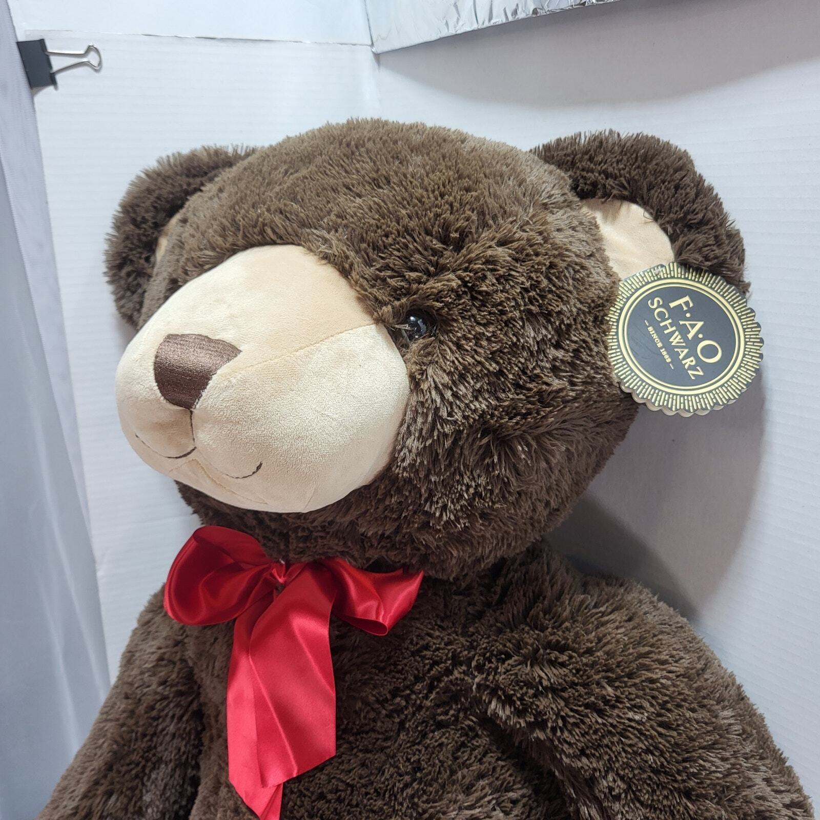 • FAO Schwarz 38" Brown Teddy Bear Soft Plush Stuffed Toy with Red Ribbon and Tag