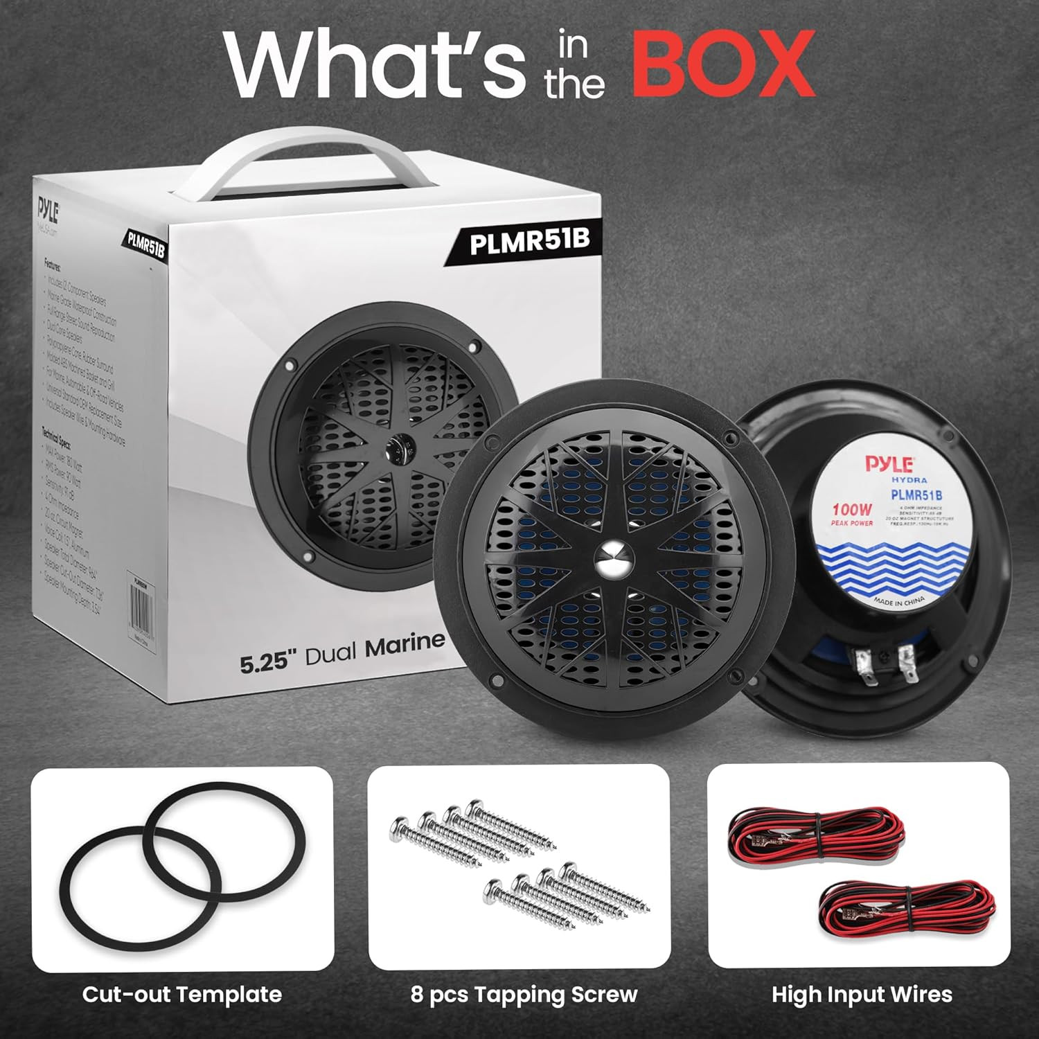 5.25 Inch Dual Marine Speakers - 2 Way Waterproof and Weather Resistant Outdoor