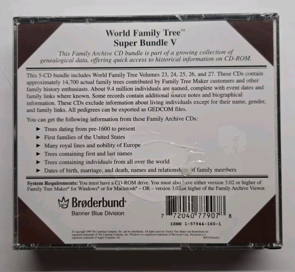 • Family Tree Maker Family Archives World Family Tree Super Bundle V 5CD Set