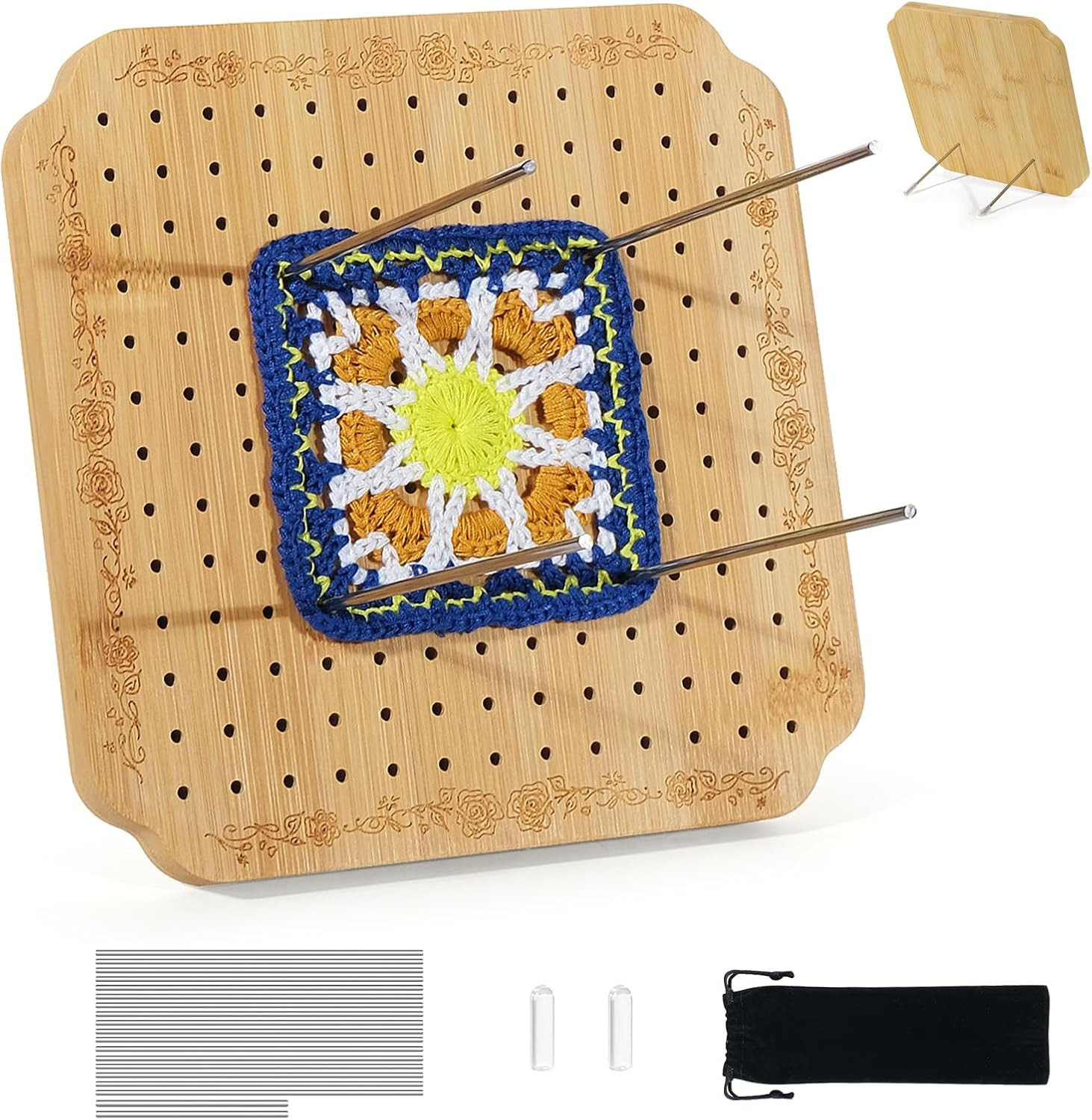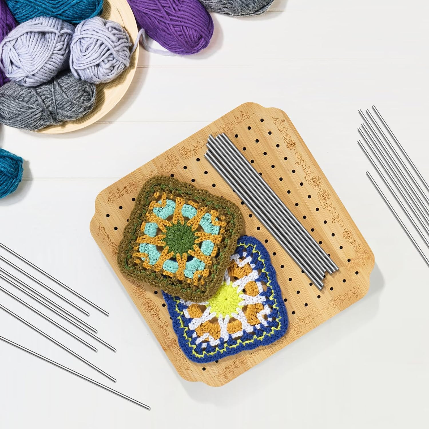 Crochet Blocking Board Wooden Granny Square for Crochet Projects Square Board...