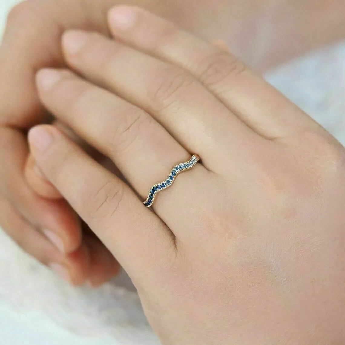 как выглядит 1.60Ct Round Cut London Blue Topaz Eternity Band Women