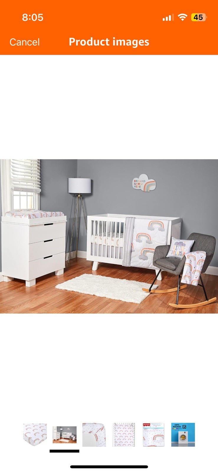 как выглядит Fisher Price Cotton Fitted Crib Sheet Neutral Cloud Dreams Collection Rainbow фото