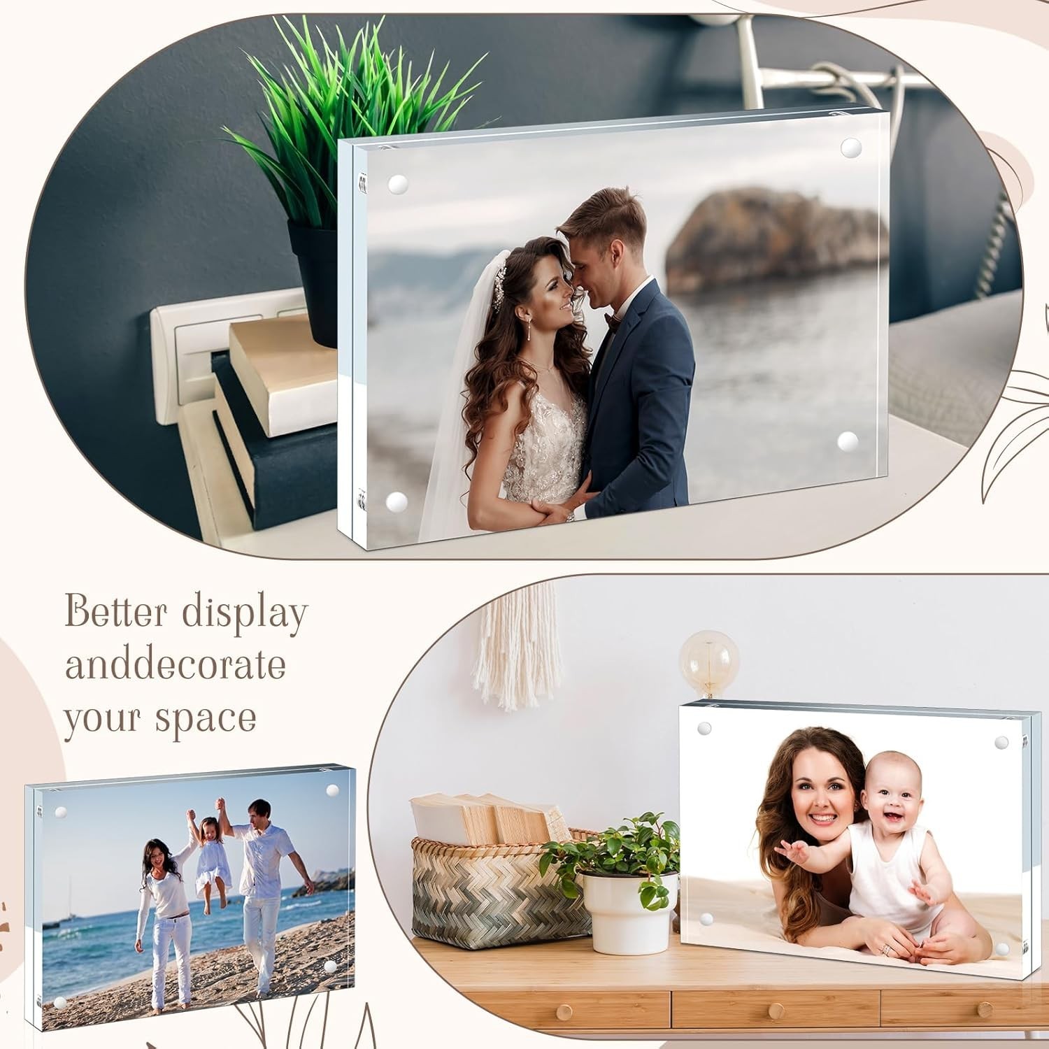 5 Pack Acrylic Picture Photo Frame Magnetic 5x7 Clear Free standing 5x7 Inch
