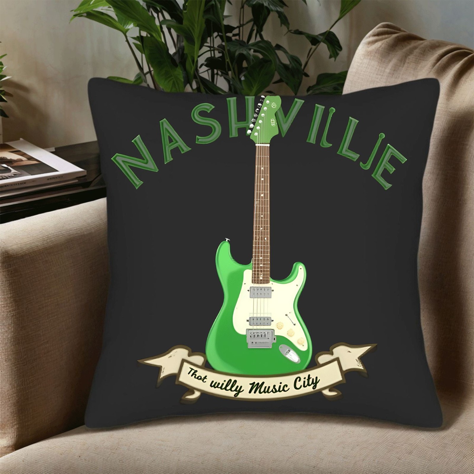 как выглядит Set of 2 Decorative Throw Pillow Covers 18x18in - Green Electric Guitar фото