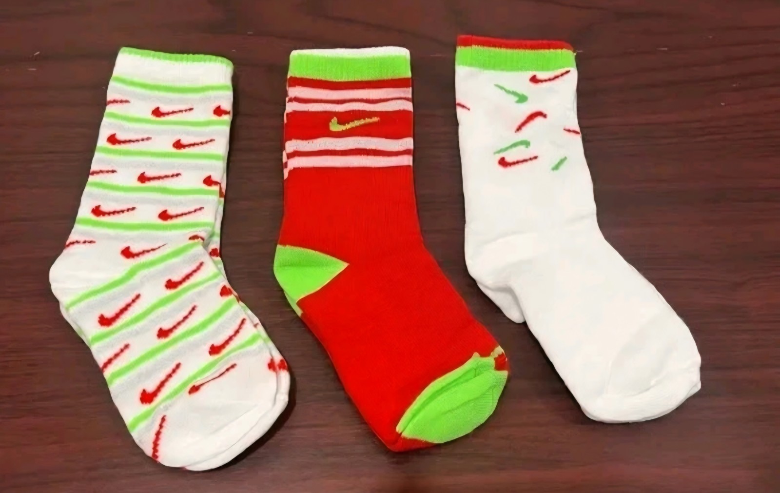 как выглядит Nike Socks Infants Size 5-7 Crew 3pack Red Green Silver White фото