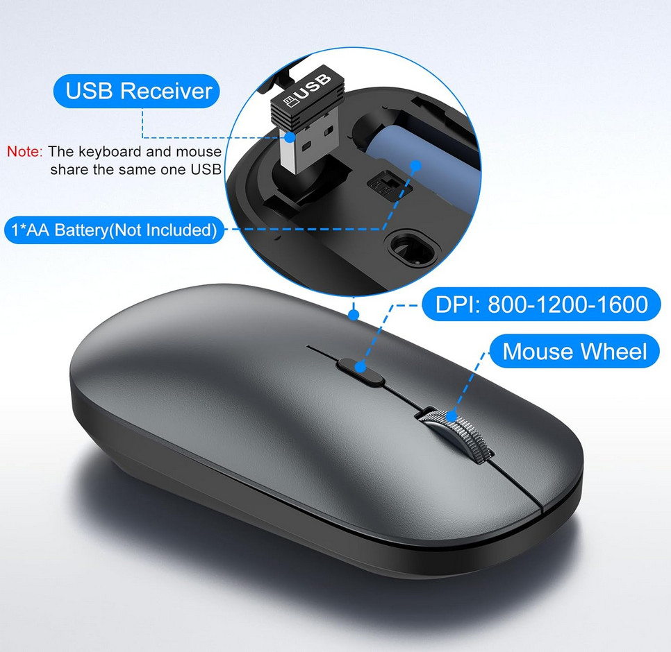 как выглядит Wireless Keyboard and Mouse Combo, Full Size Keyboard and Mouse, Long Battery... фото