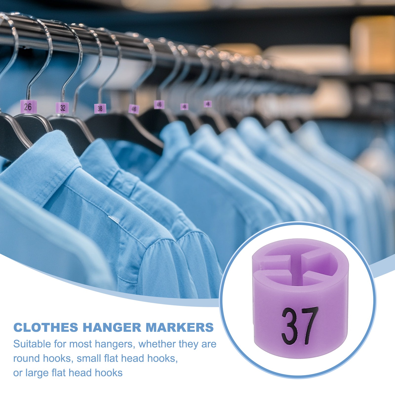 100 Pcs Clothes Hanger Marker Number 37 Tag 3mm Rod Garment Size Tag Purple Pink