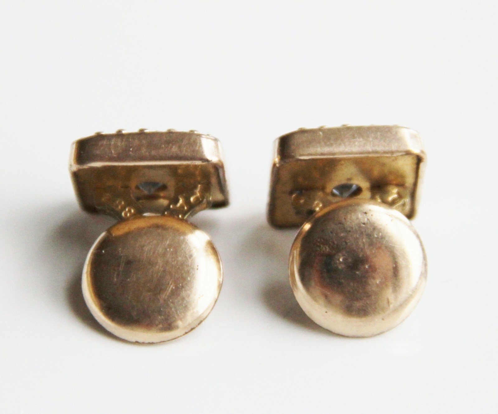 как выглядит 2 Gold Filled Victorian Shirt Collar Button Studs Textured Fronts W/ Stones 1883 фото