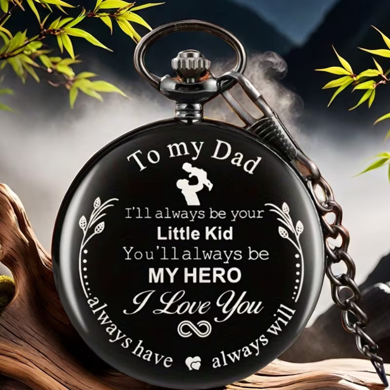 To My Dad 'Design Quartz Fob Pocket Watch, Black Chain Necklace Chain Gift