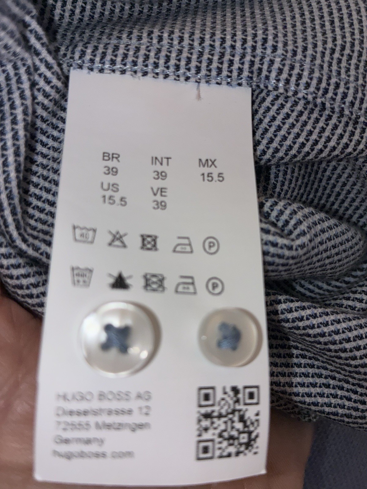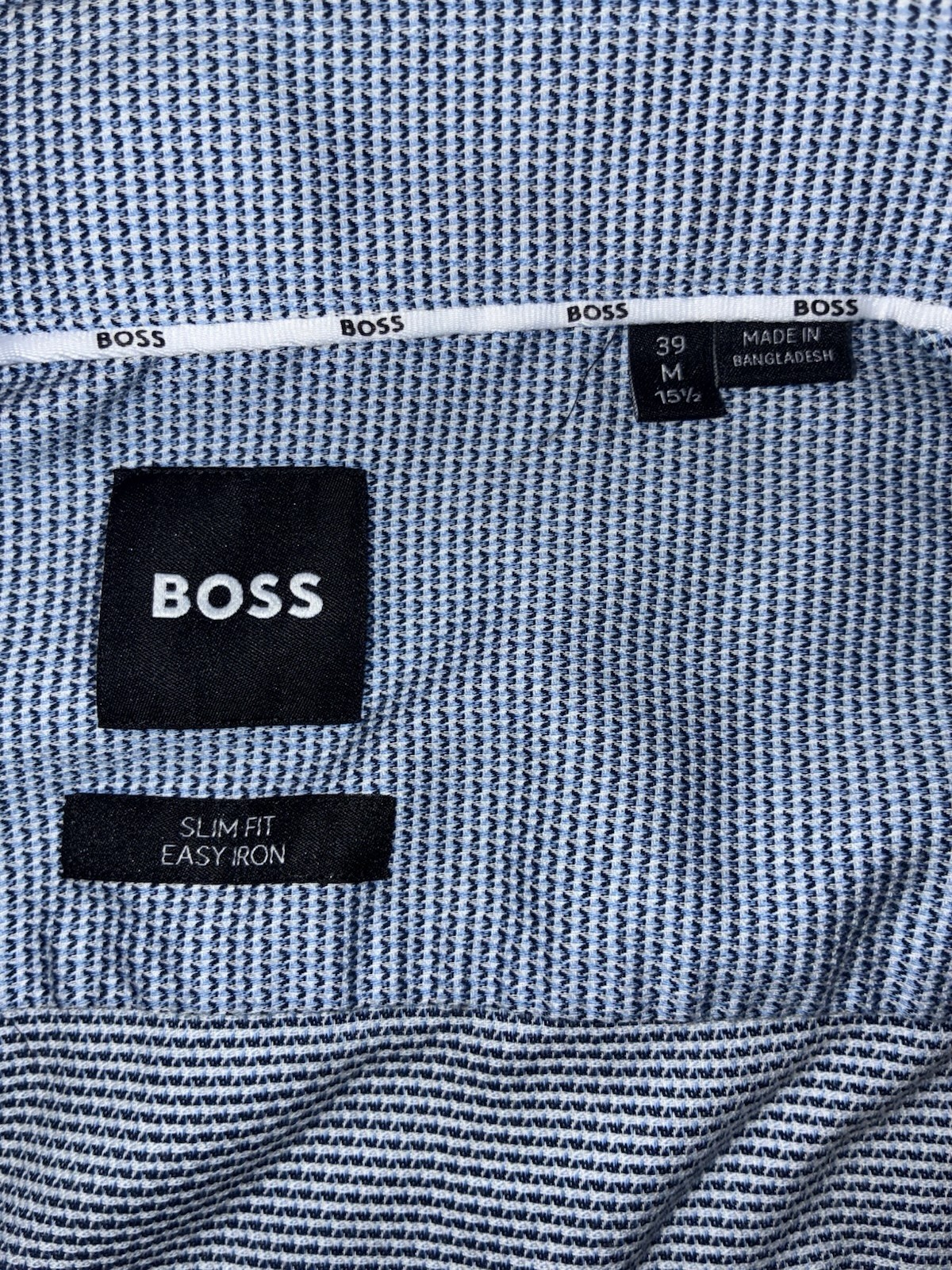 как выглядит Hugo boss slim fit easy iron dry dress shirt men s 39 M blue micro pattern фото