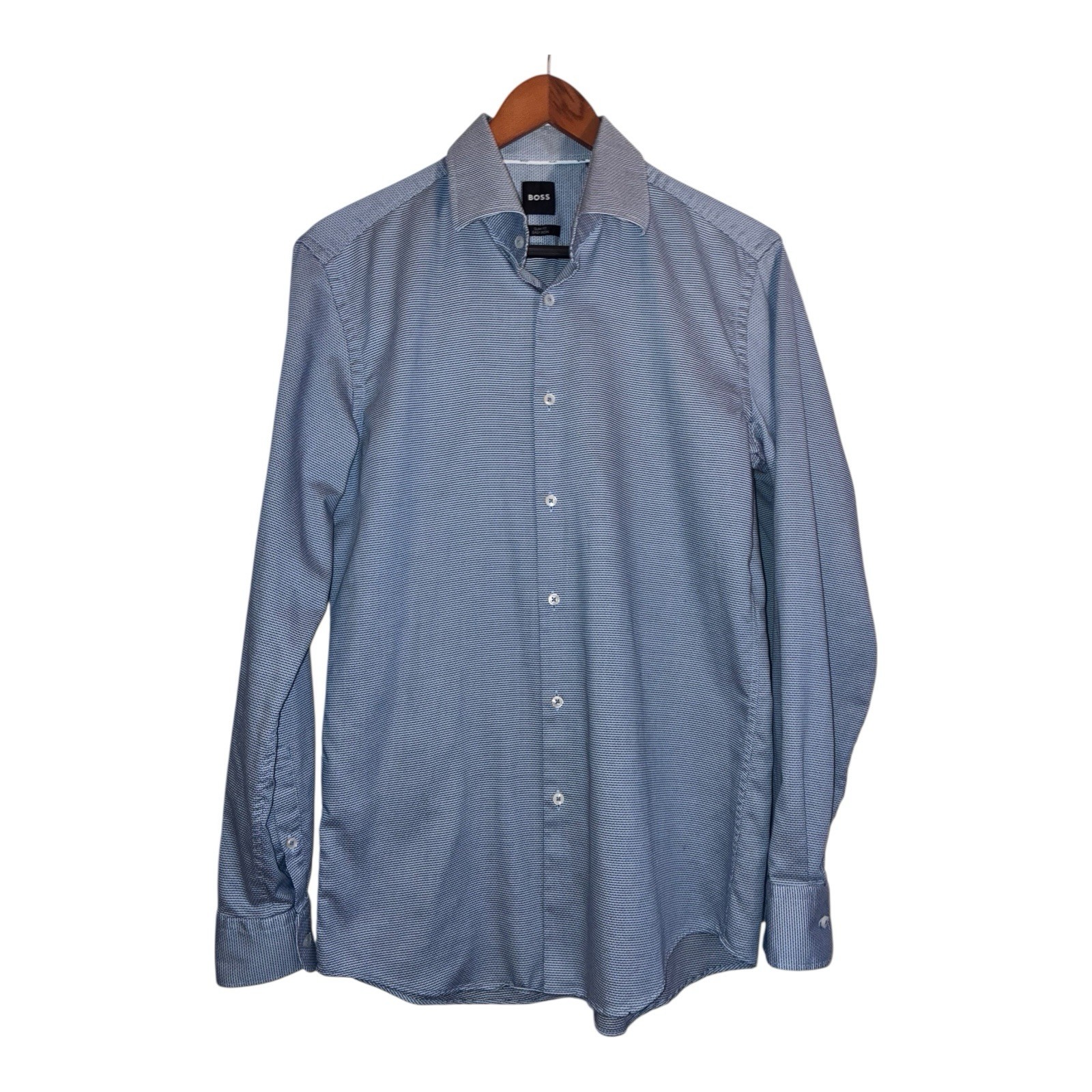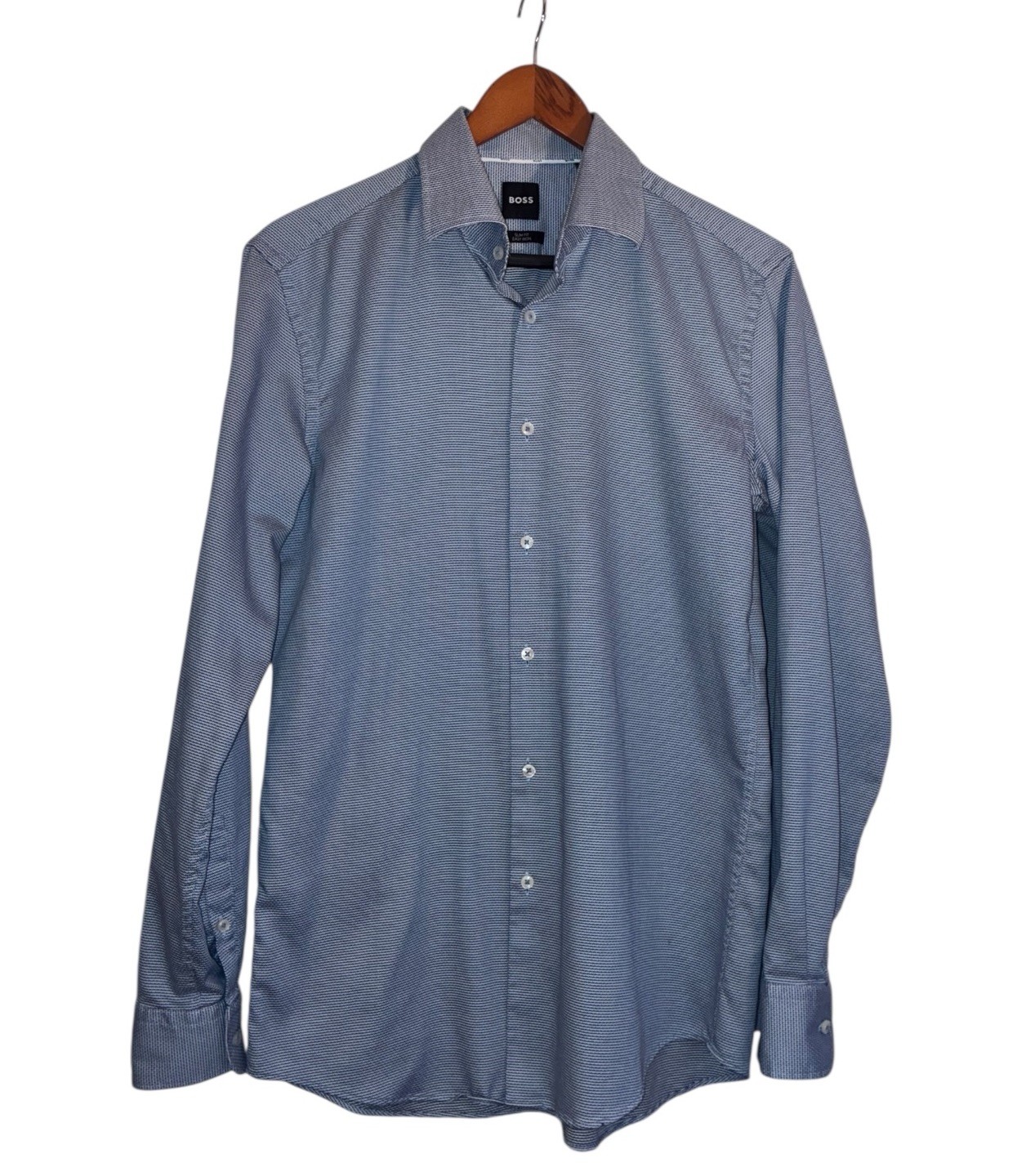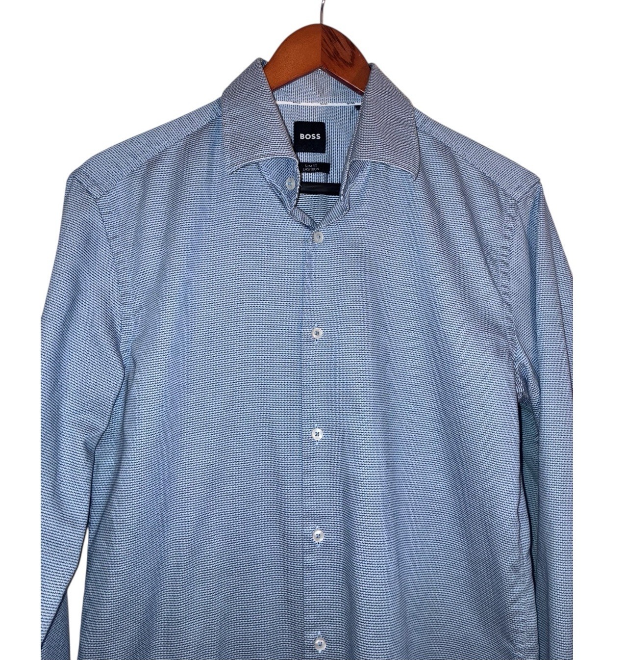 Hugo boss slim fit easy iron dry dress shirt men s 39 M blue micro pattern