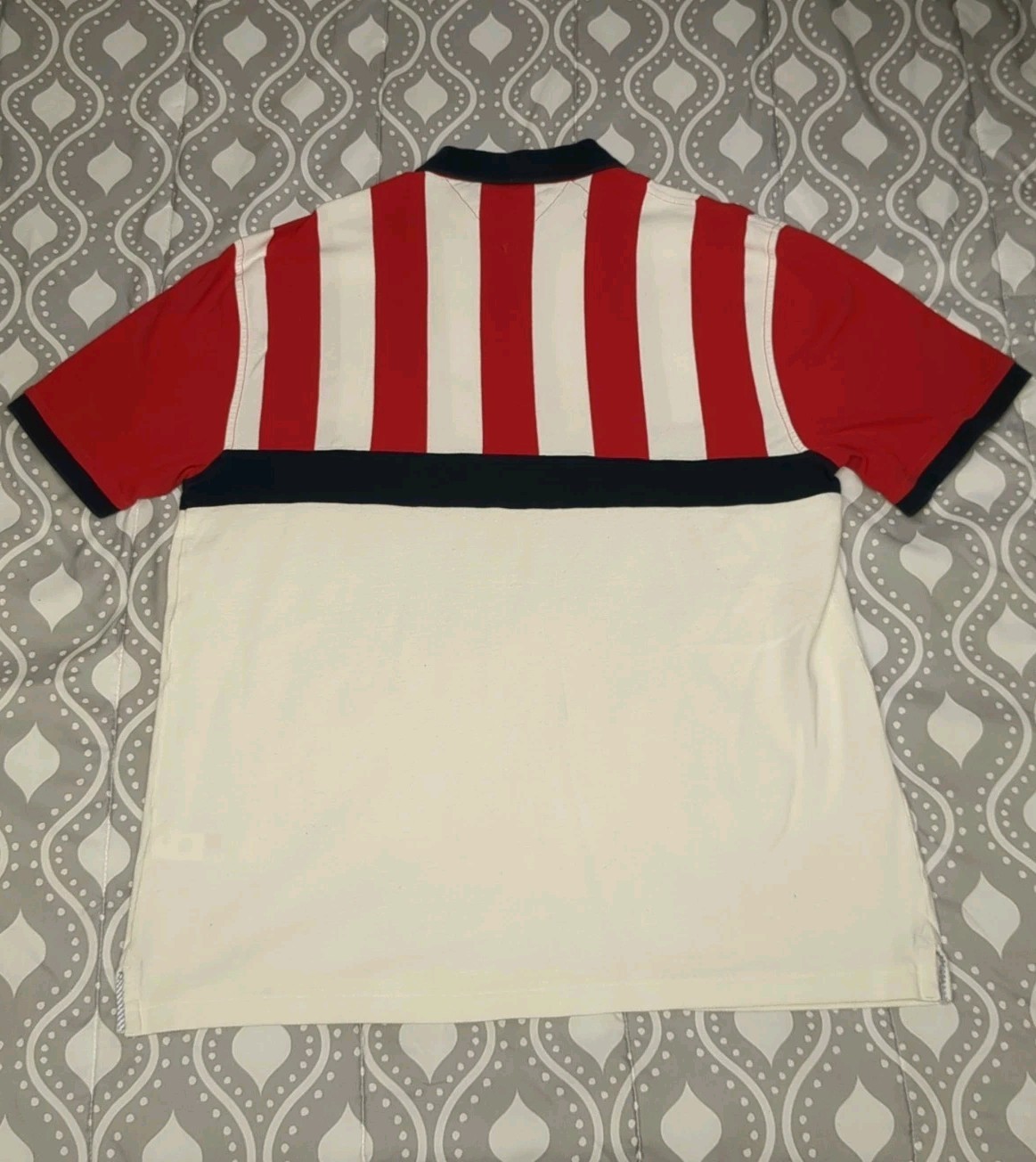 как выглядит Y2K Tommy Hilfiger Polo Shirt Men s XL Color Block Spell Out Logo USA Prep фото
