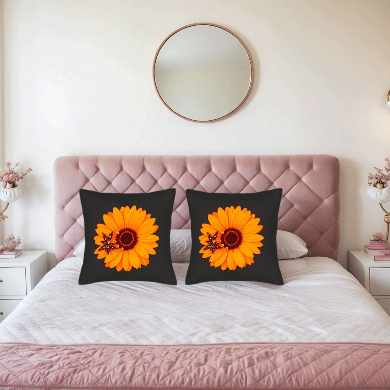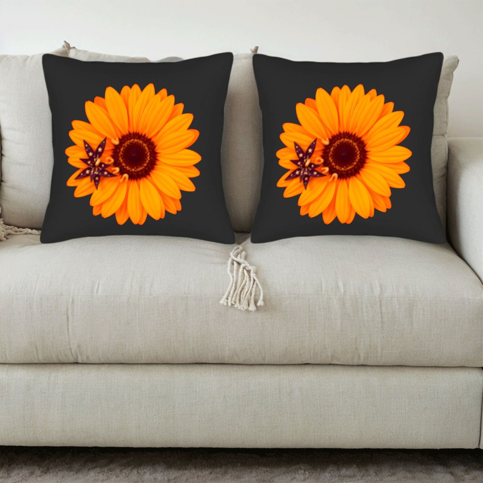 Set of 2 18x18in Throw Pillow Covers with Vibrant Orange Flower Design