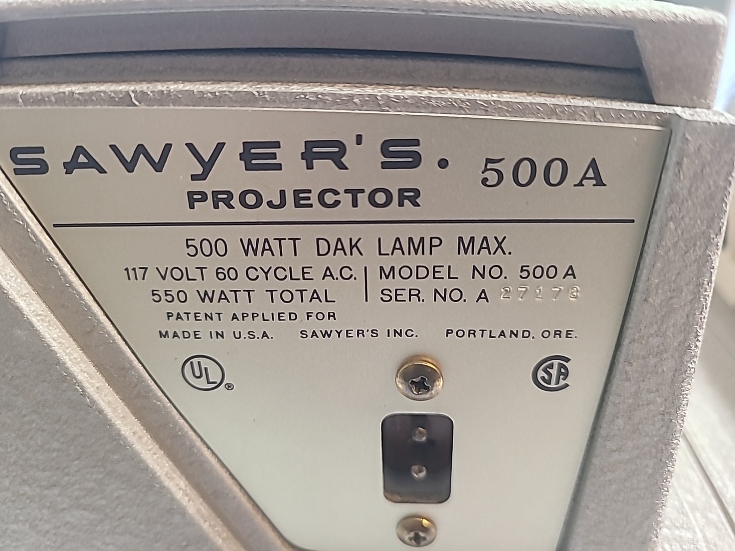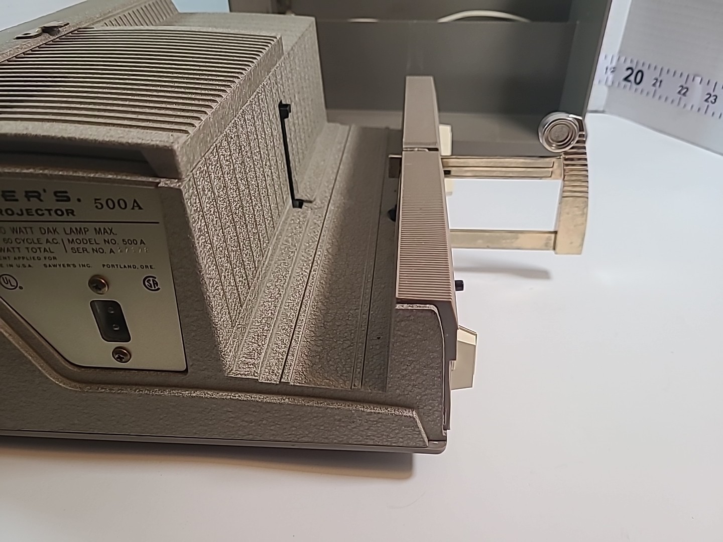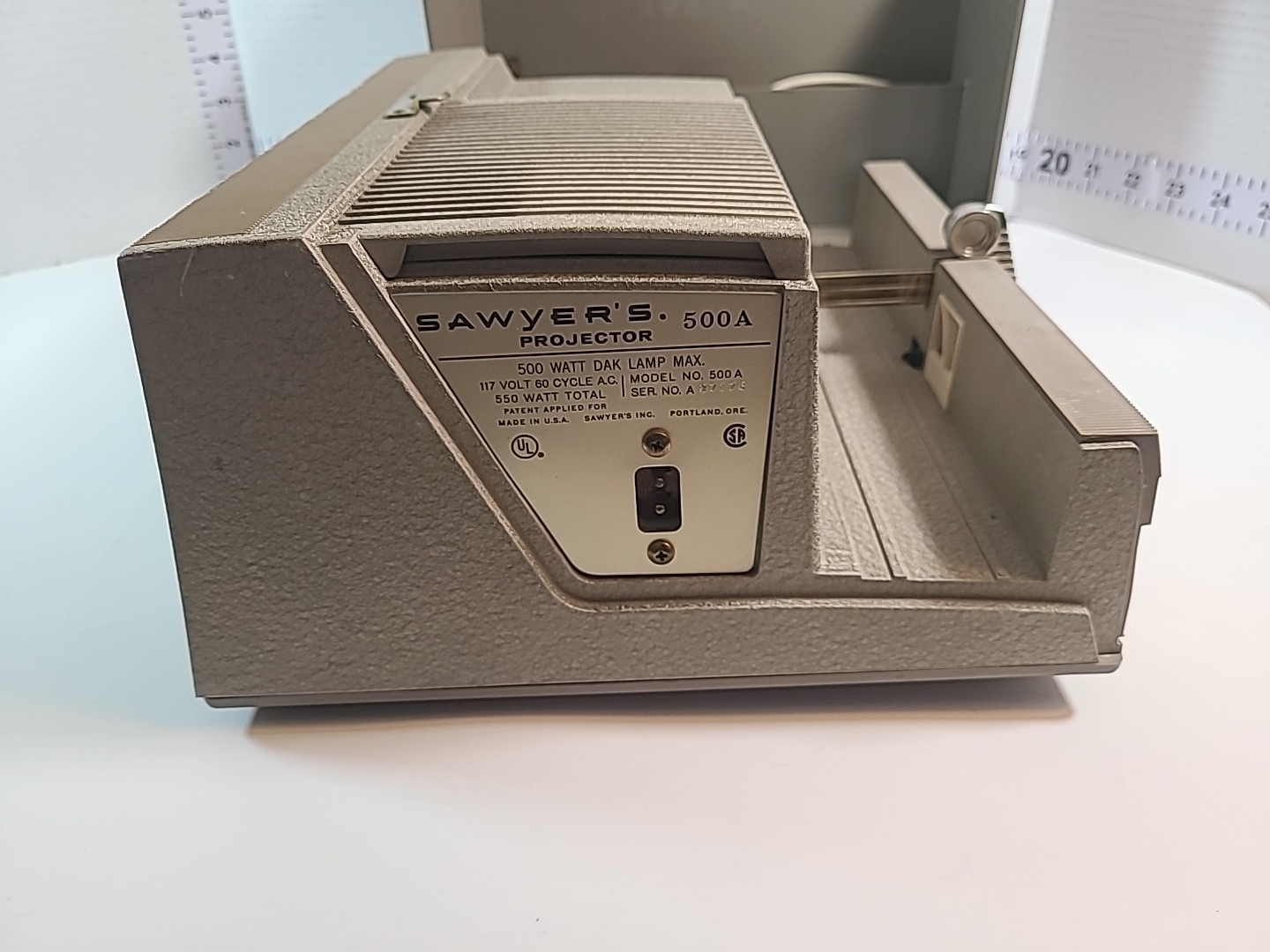 Sawyer 500-A Slide Projector Original Case Power Cord Brass Trim Tested/Working