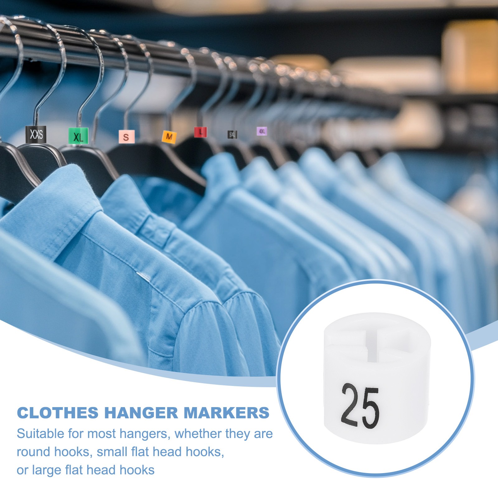 100 Pcs Clothes Hanger Markers, Number 25 Tag for Clothing Hangers, White