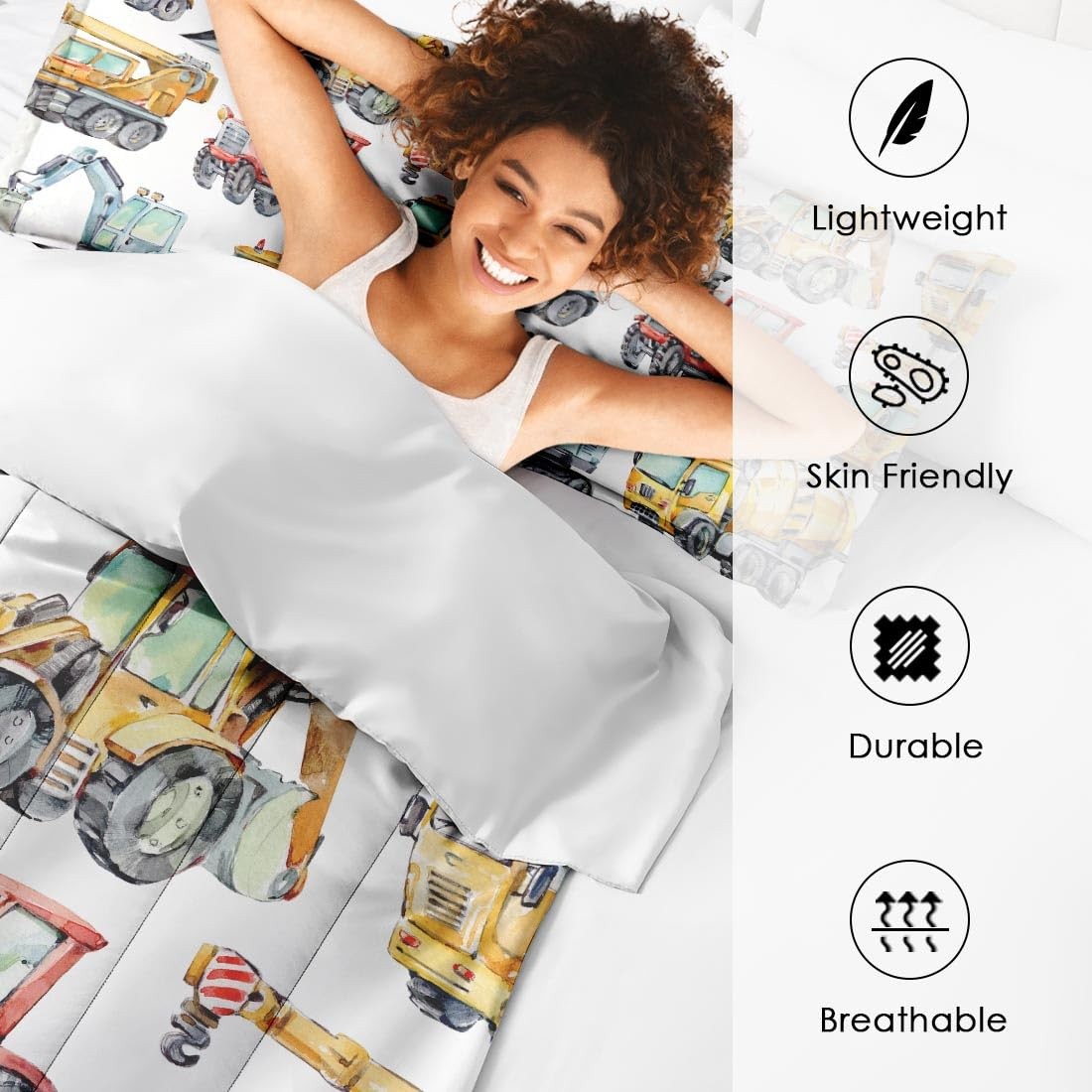 Nesphy Colorful Car Trucks Construction Comforter Set for Boys Kids Toddlers ...