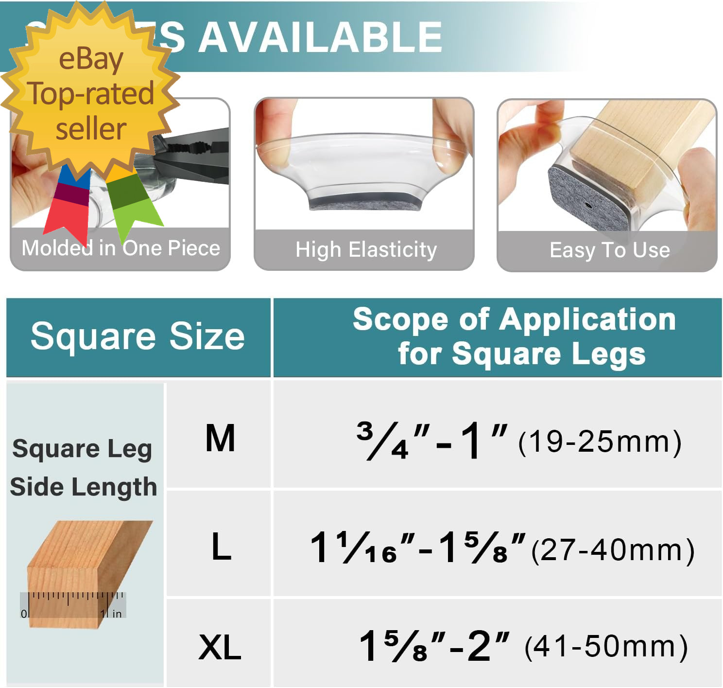 24 Pcs Chair Leg Floor Protectors Square Silicone Felt Furniture Leg Pads Caps