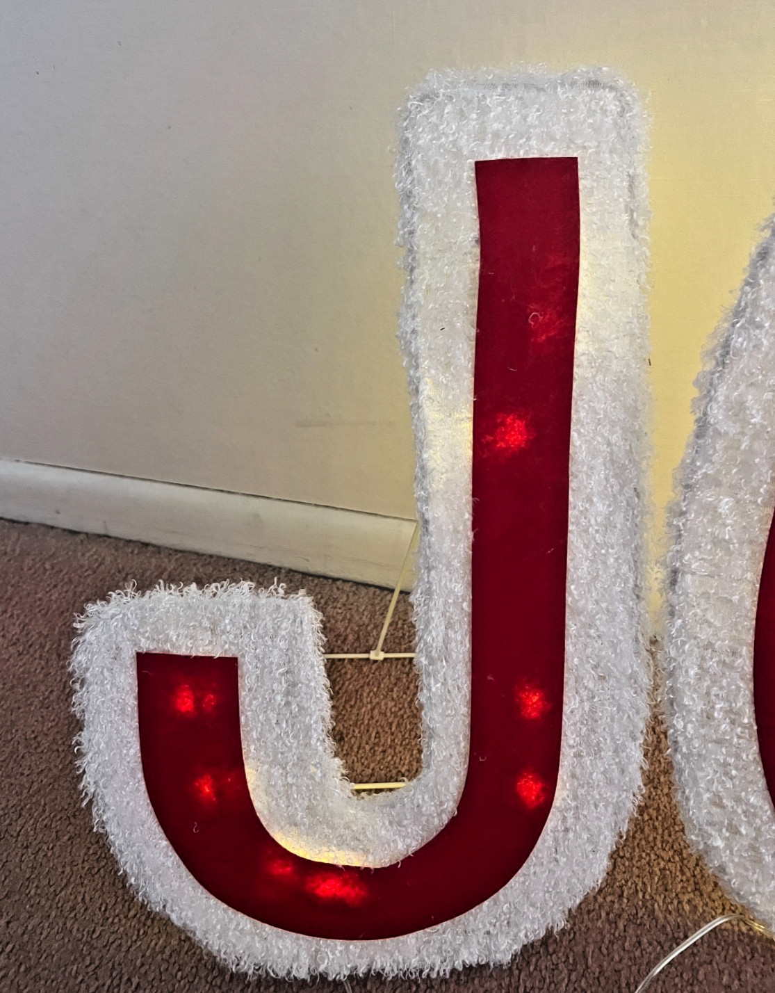как выглядит Lighted Flocked JOY Sign Christmas Holiday Yard Indoor Decor Red White Battery фото