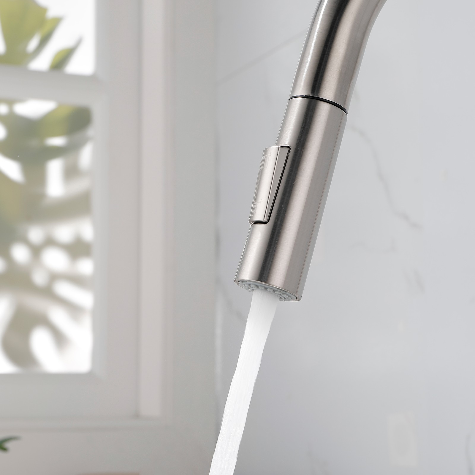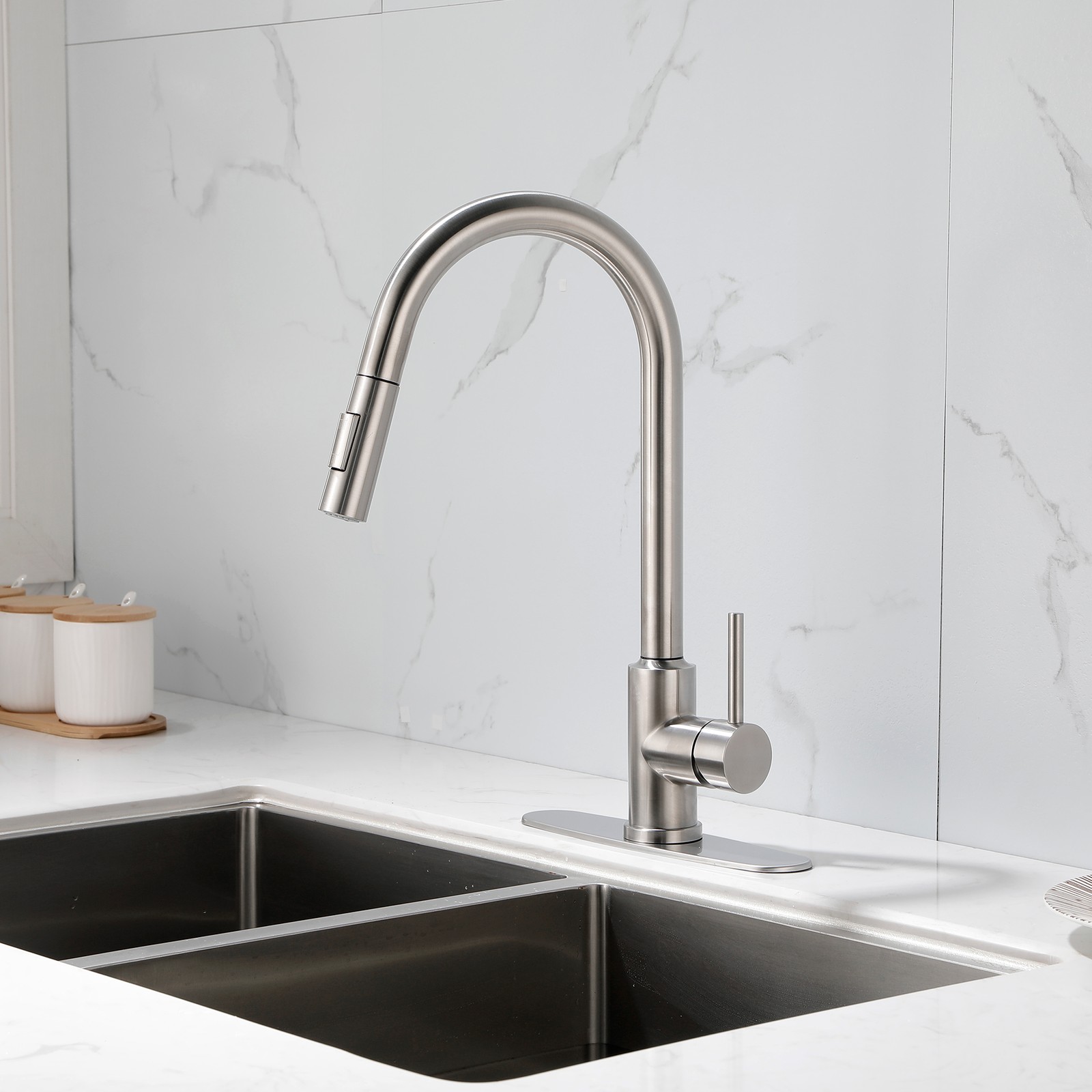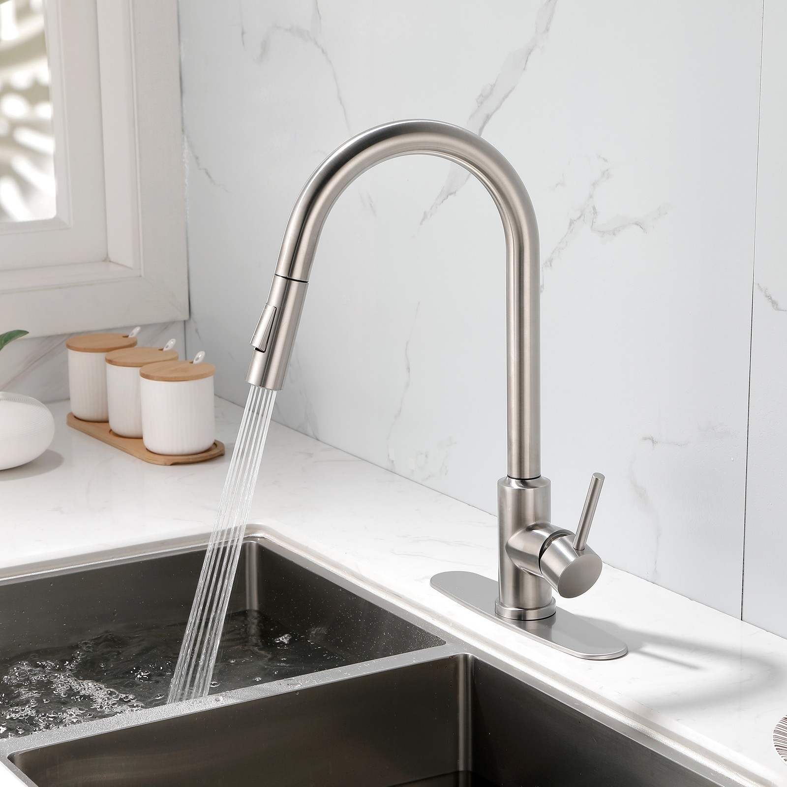 Stainless Steel Single Handle Kitchen Faucet: High Arc Pull Down/Out Sprayer