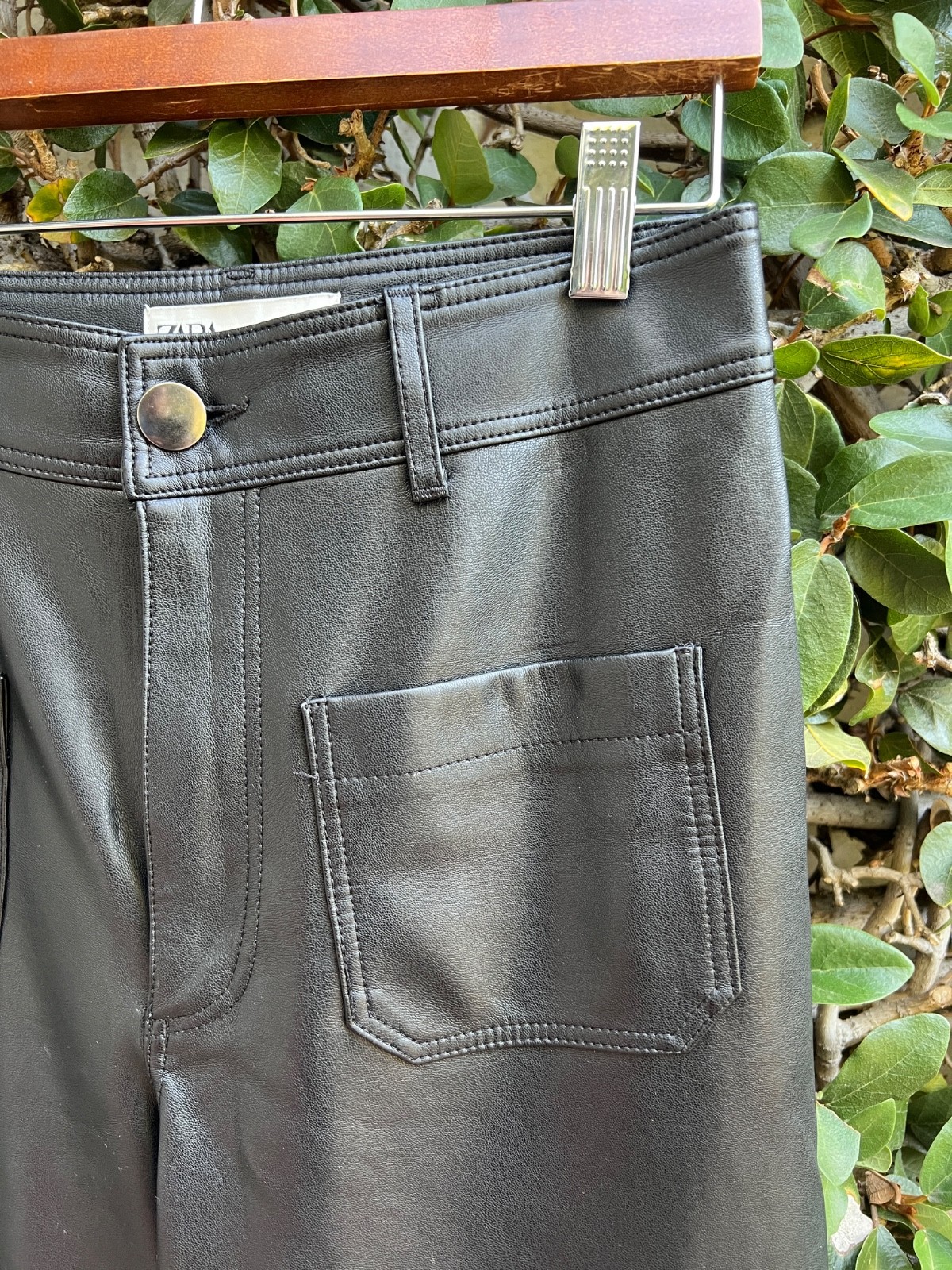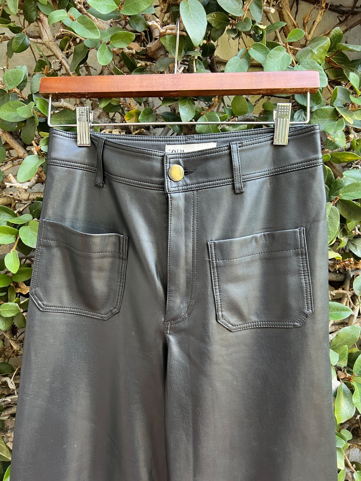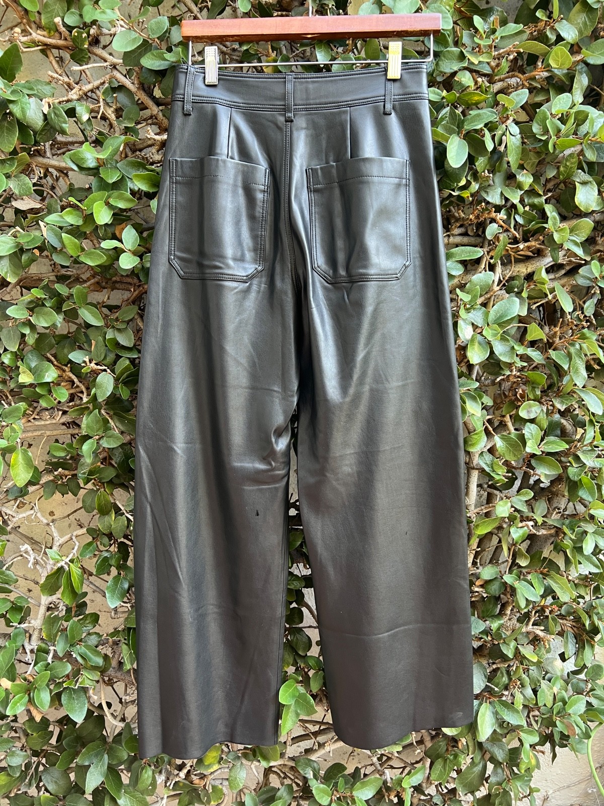 Zara Faux Leather Pants Jeans Womens Black Wide Leg Quiet Luxury Size 4