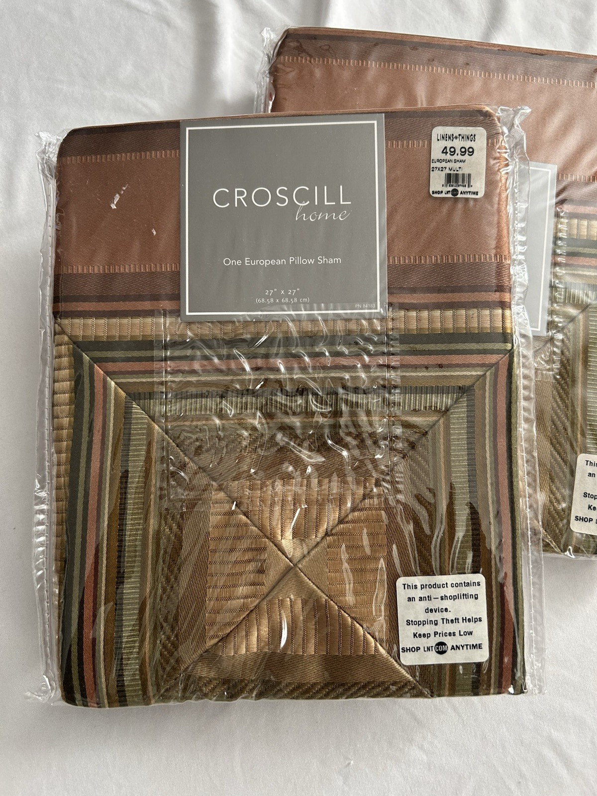 как выглядит Set of 2 Croscill Carrington Stripe Euro Shams Brown Bronze 27" x 27" NWT фото