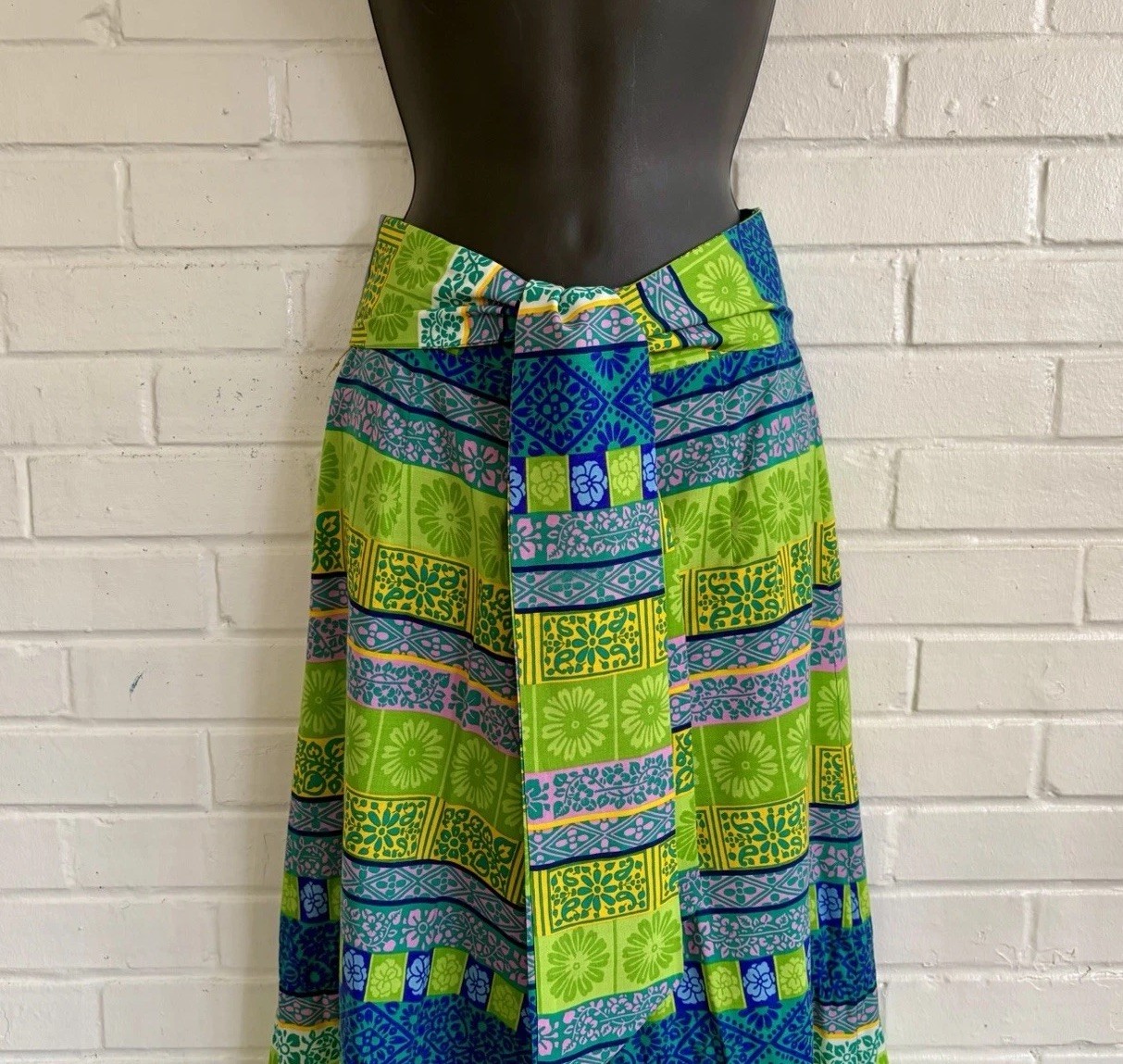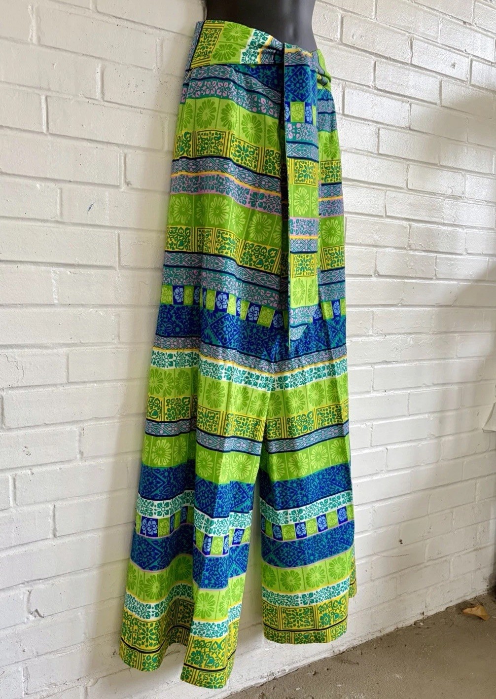как выглядит Alex Colman Vintage Boho Green and Blue Wide Leg Palazzo Pants SZ 26 XS EUC фото