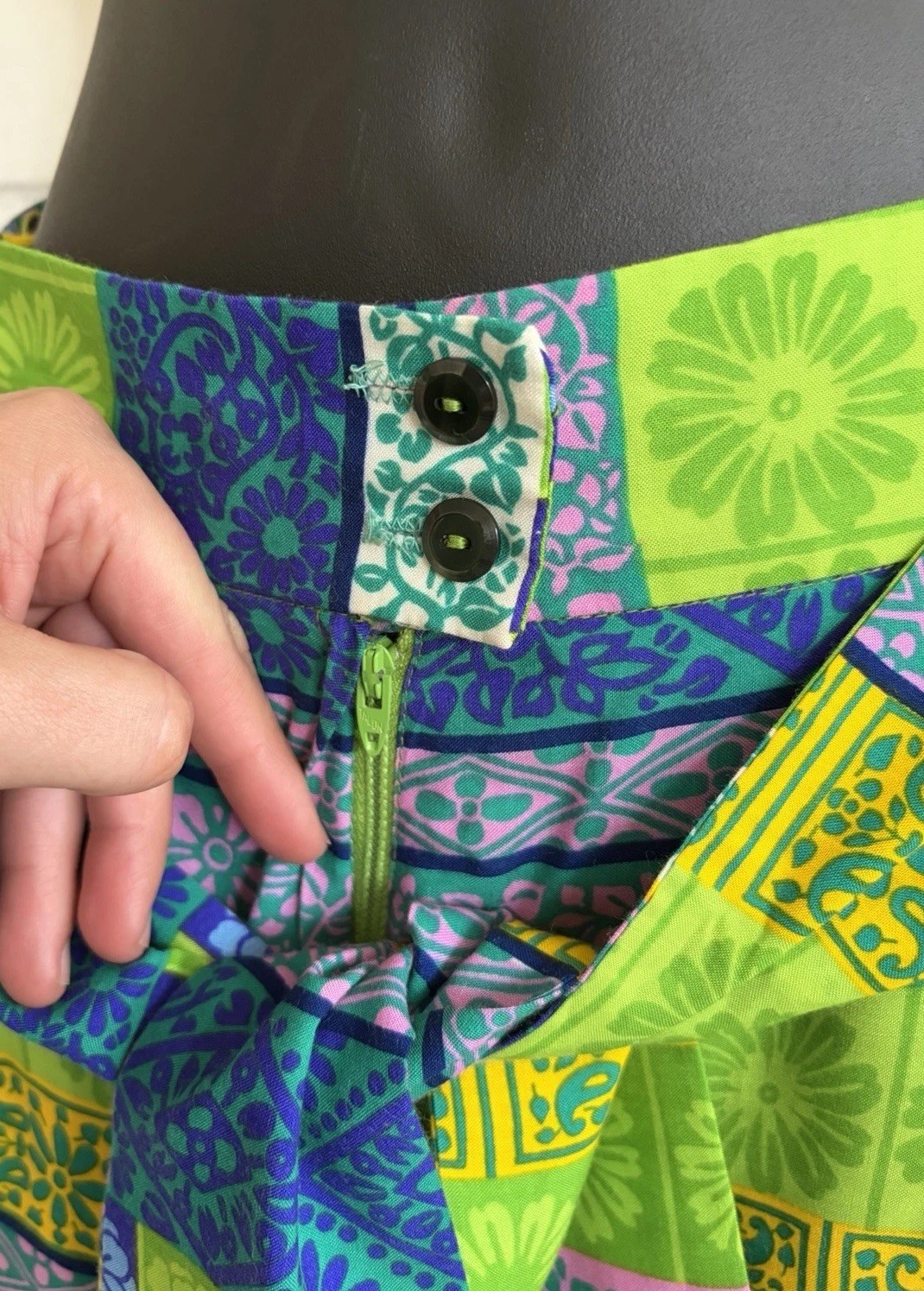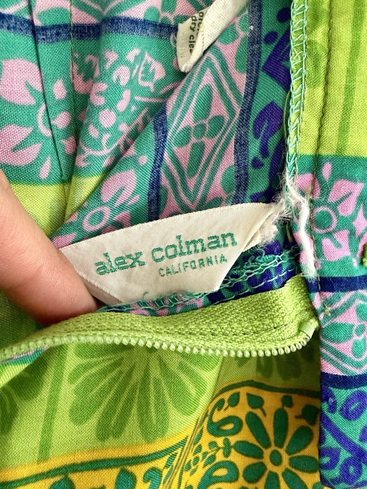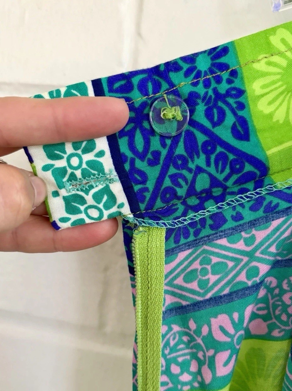 Alex Colman Vintage Boho Green and Blue Wide Leg Palazzo Pants SZ 26 XS EUC