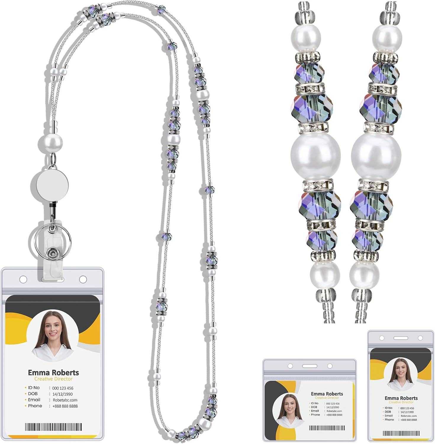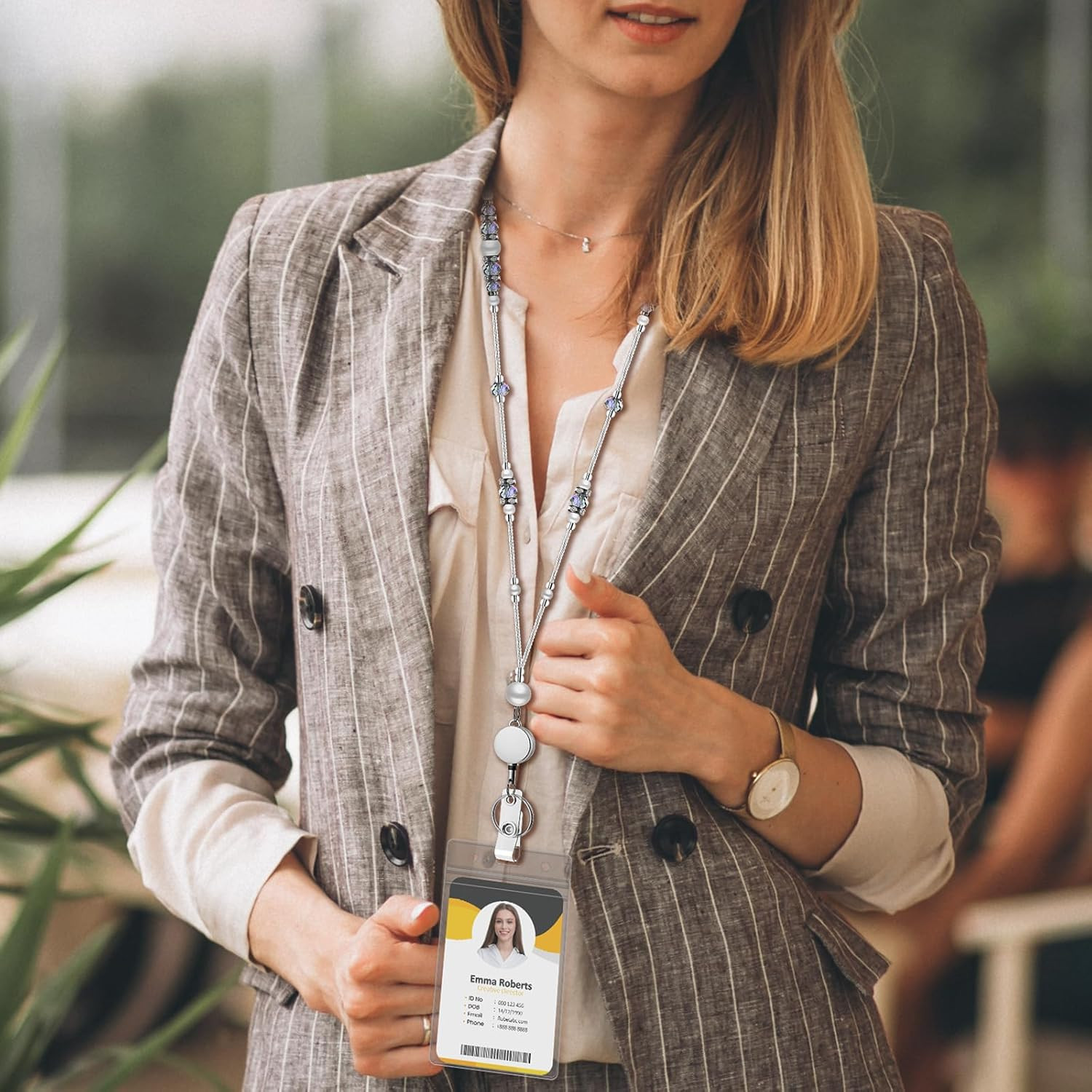 Lanyards for ID Badges and Keys, Retractable Badge Lanyard for Women, Beaded Tea