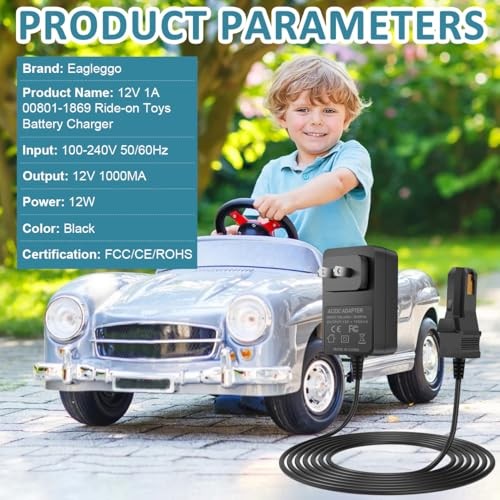 12-Volt Charger Replacement Part for Power Wheels Gray Battery and Orange Top
