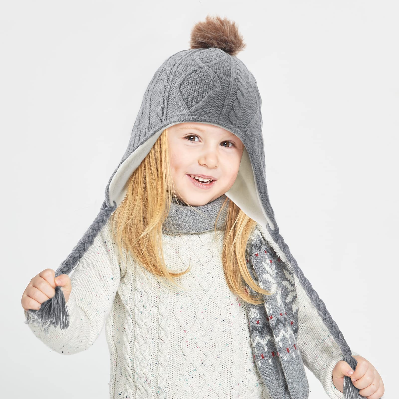 2 Pcs Girls Knit Hats Kids Winter Hats for Girls with Ear Flaps Fleece Lining...