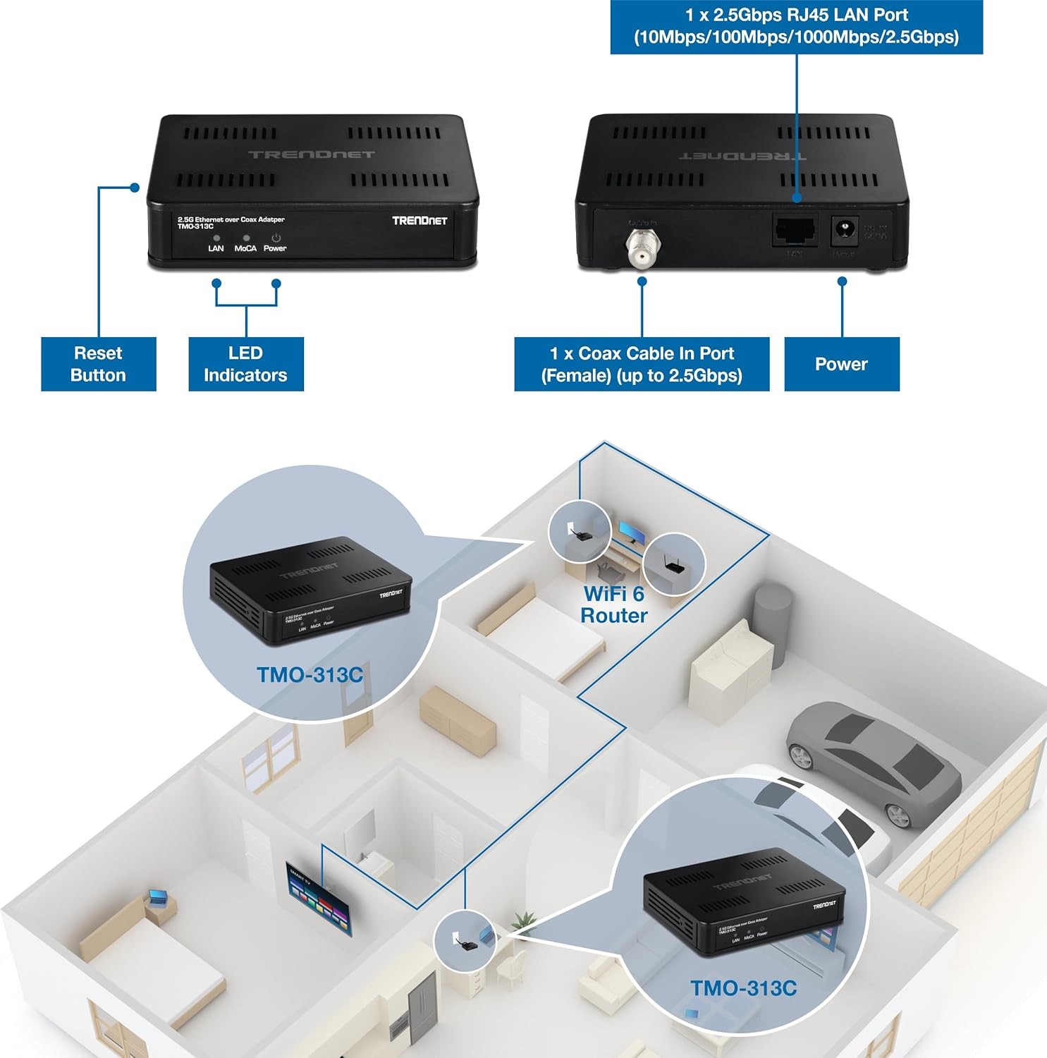 Short Titles: TRENDnet TMO-313C,2.5Gbps Ethernet Over Coax Adapter