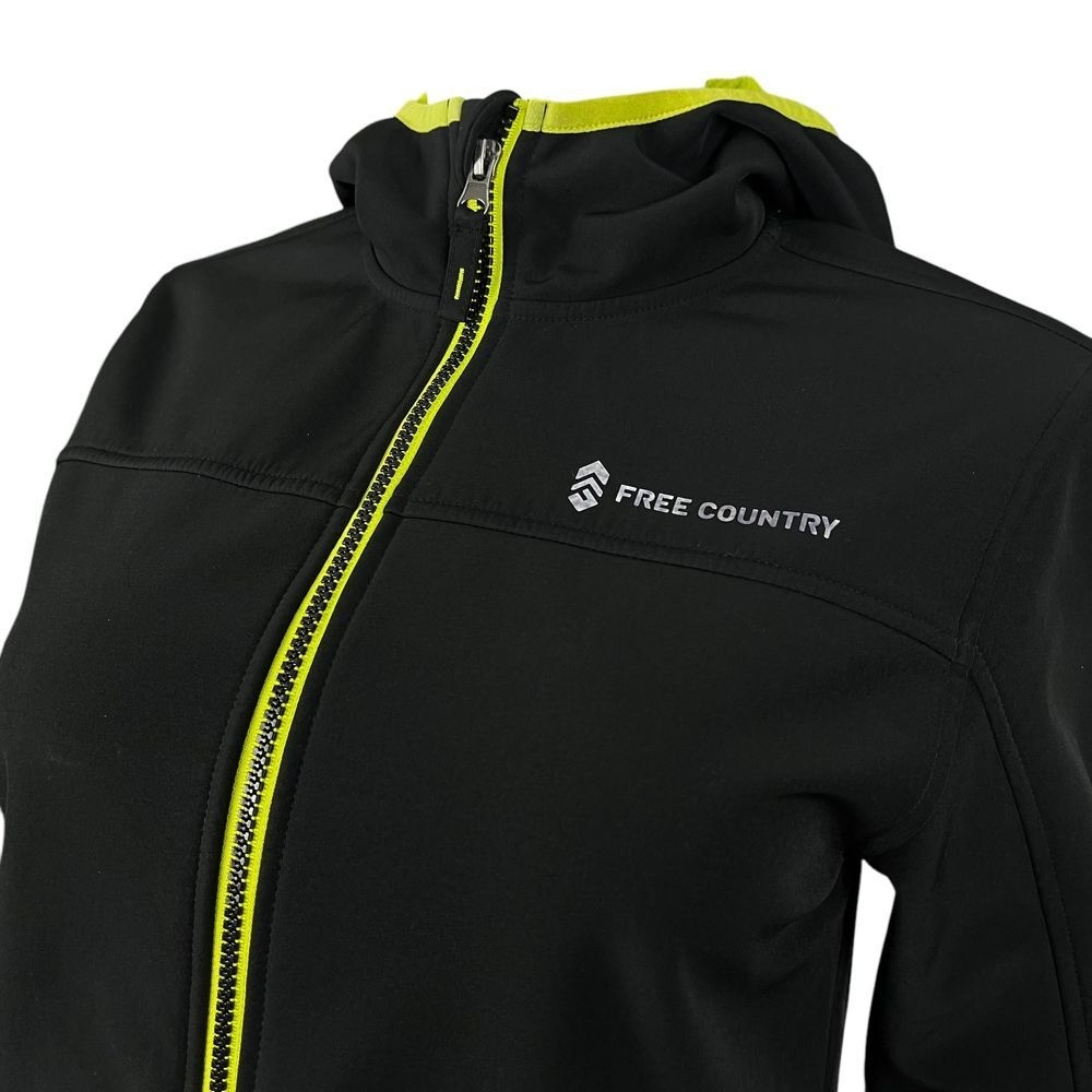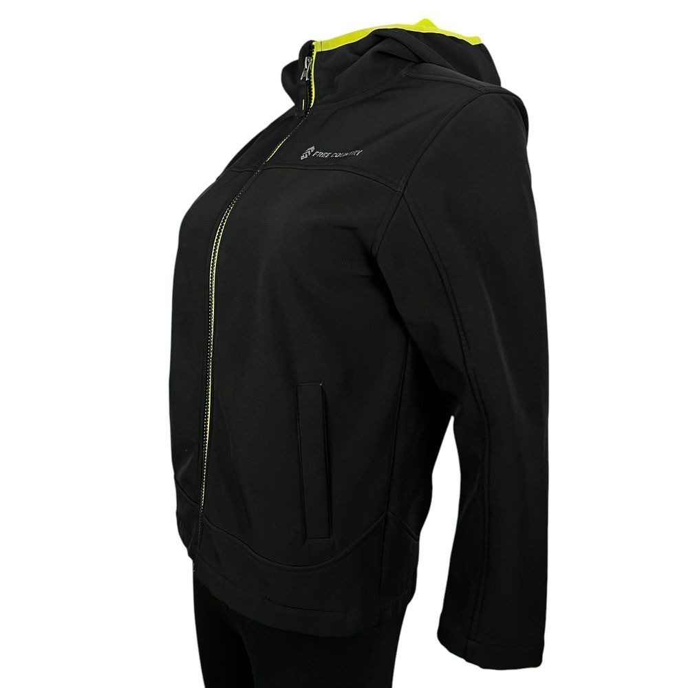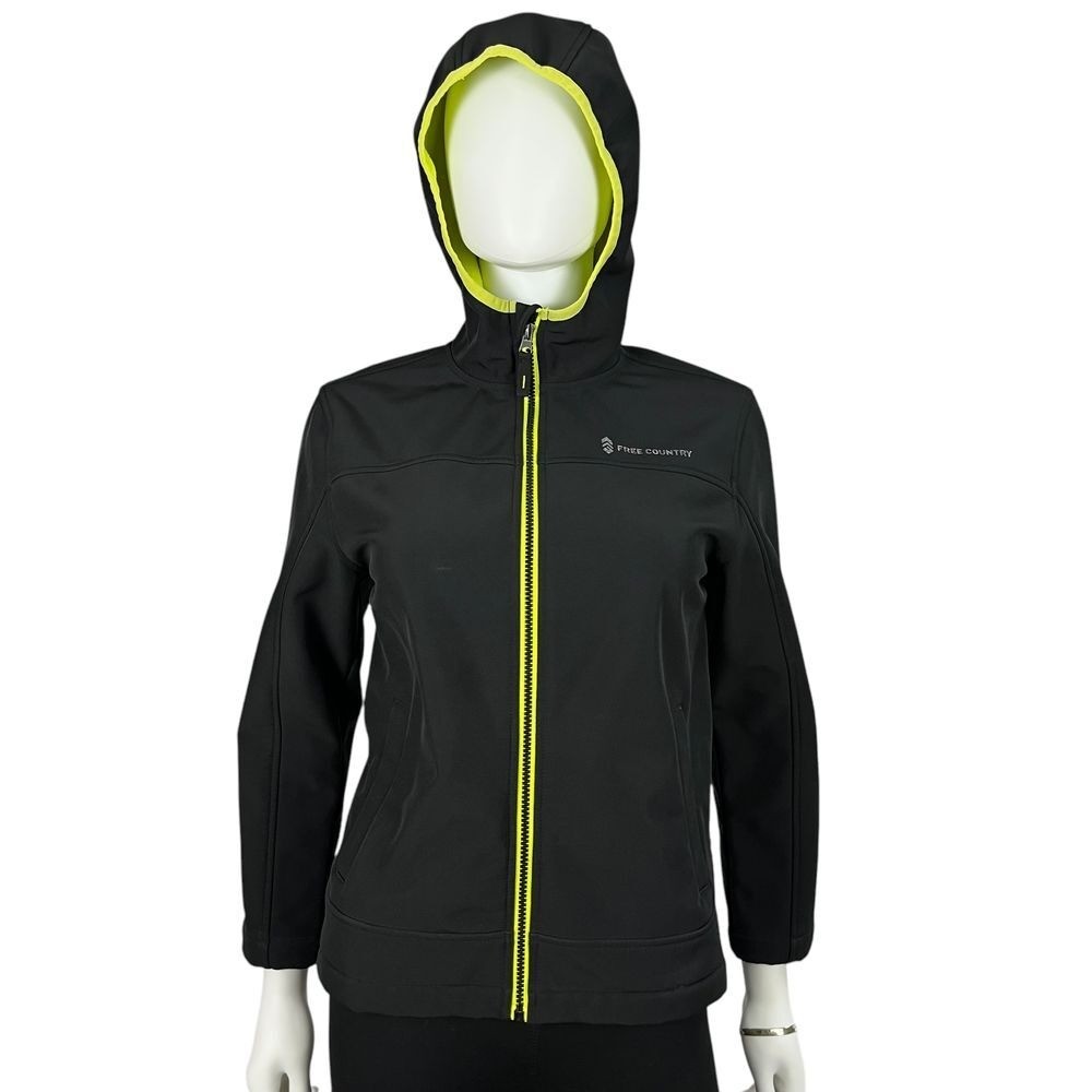 как выглядит Free Country Black Hooded Athleisure Performance Jacket Neon Lined Youth 10/12 фото