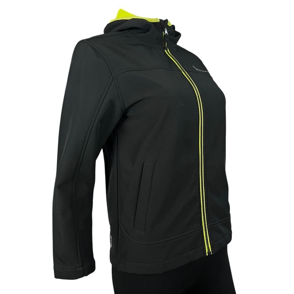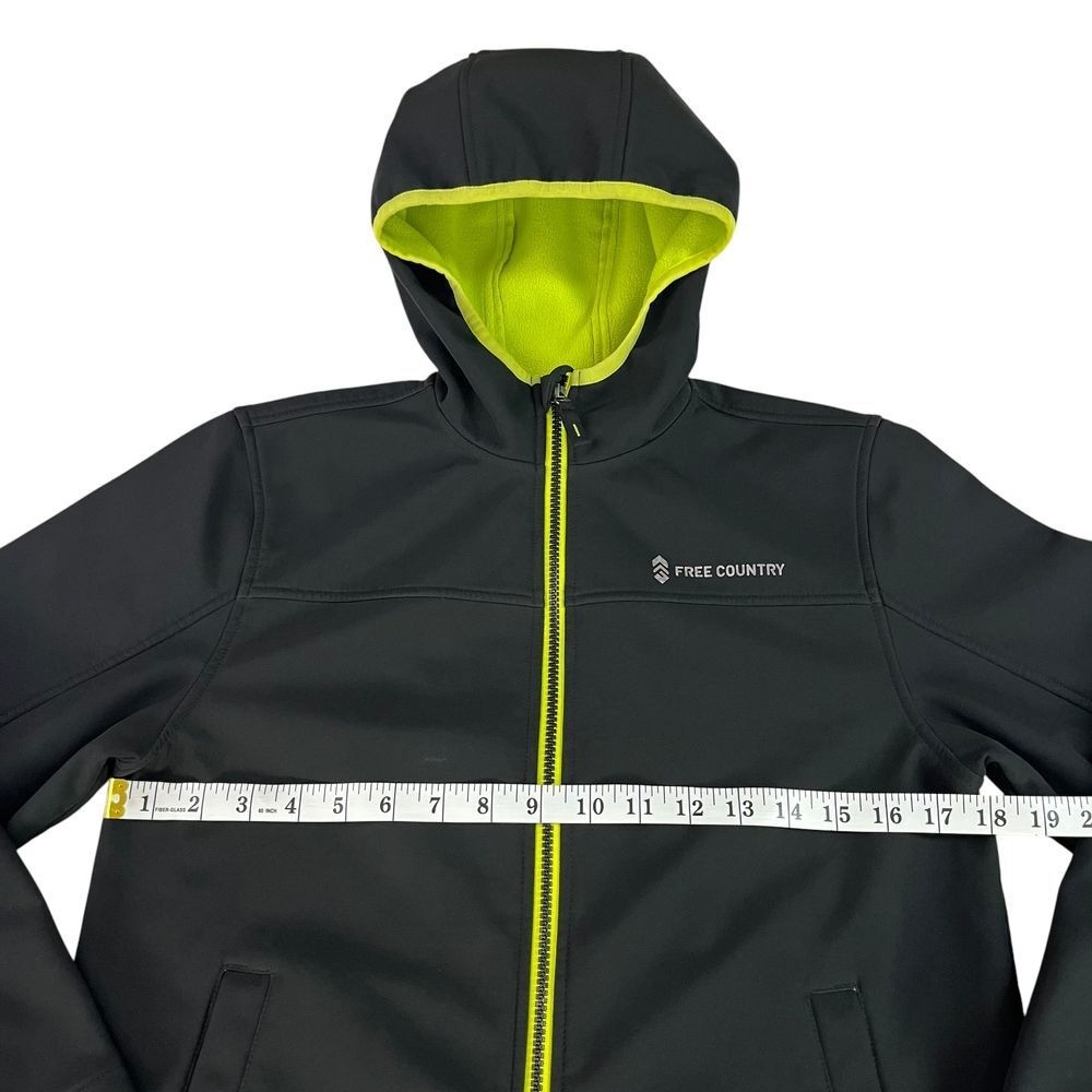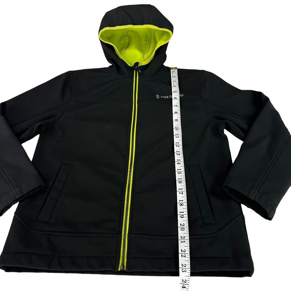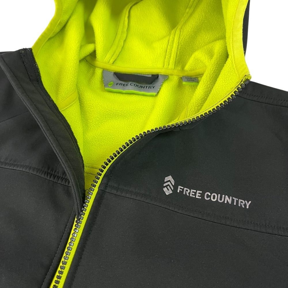 как выглядит Free Country Black Hooded Athleisure Performance Jacket Neon Lined Youth 10/12 фото