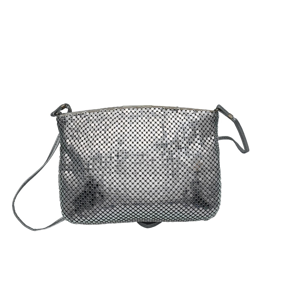 как выглядит Silver Mesh Bag Formal Zipper Purse Clutch Handbag with Strap 9" X 7" Vintage фото